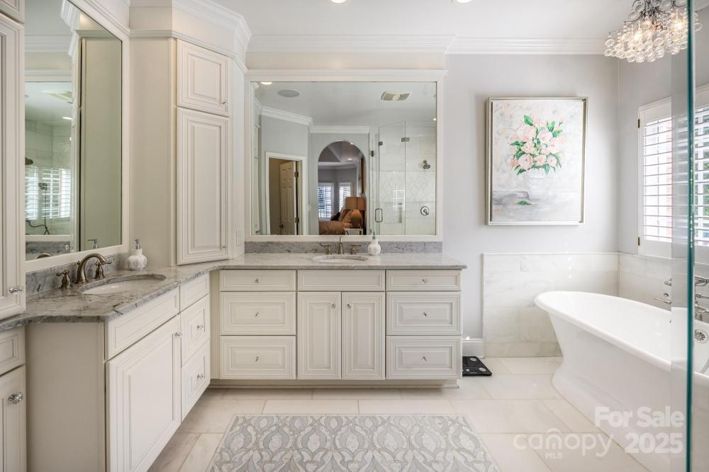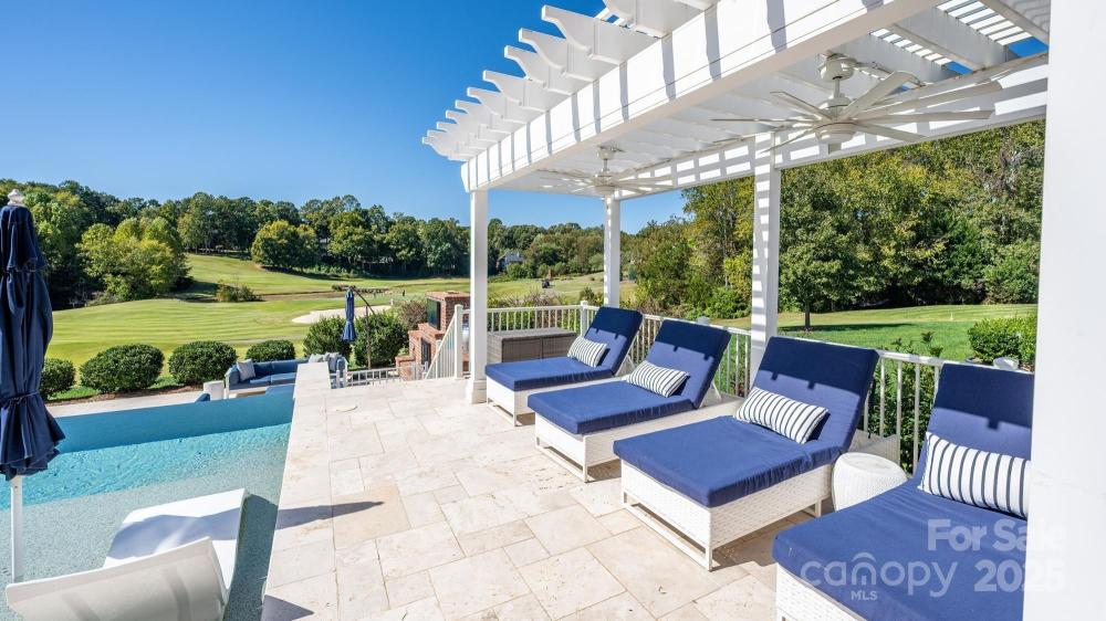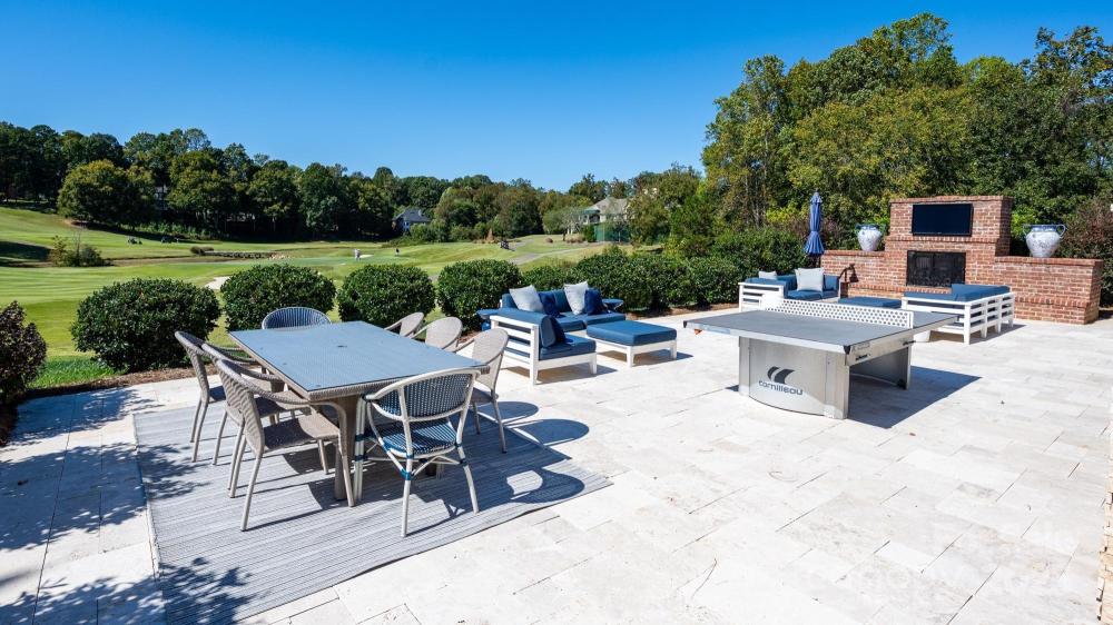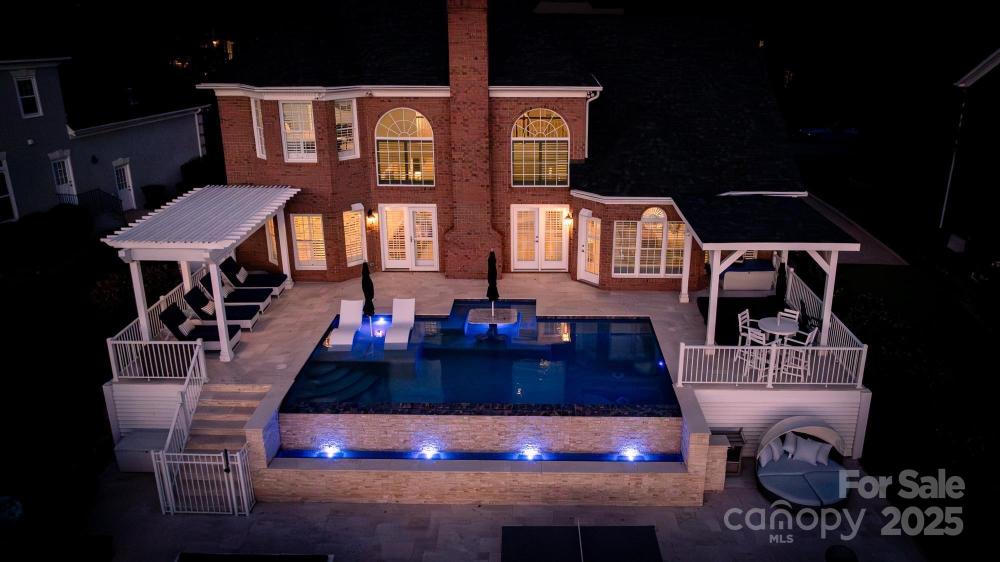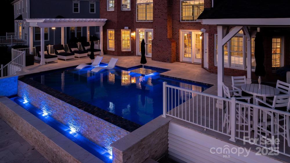 Please see website for video and additional pictures!: https://tours.auroraphotovideo.com/15705-northstone-dr. Stunning full-brick home on the 9th hole and overlooking the 18th of the P.B. Dye Signature Golf Course, offering resort-style outdoor living with premium updates throughout. The backyard oasis features a travertine vanishing-edge infinity pool with custom lighting, outdoor fireplace, and two mounted TVs under a pergola and gazebo equipped with fans and a mister system. The remote-controlled fountain and landscape lighting enhance the ambiance, while AstroTurf in the side yard and an invisible dog fence provide low-maintenance convenience. Irrigation system includes an added water line to auto-fill the pool (no sewer tax on water used). Inside, no detail was spared. All-newly updated flooring and staining of hardwood floors, custom cabinetry in the family room, study, kitchen, primary closet, and garage, and Italian marble tile showcase craftsmanship and elegance. The gourmet kitchen includes a Wolf dual-fuel range, Sub-Zero built-in refrigerator, Sharp microwave drawer, and granite and quartz countertops. The primary suite offers luxury and comfort with an oversized frameless glass shower featuring dual shower heads, Italian marble tile, a free-standing tub, new plumbing fixtures, and a Toto bidet system. Additional highlights include: Hand-painted French-style wallpaper in the dining room, New chandeliers and light fixtures throughout (entry hall, dining, study, kitchen, and stairway), Updated flooring and staining, Custom carpet stair runner, New double front doors with privacy film, Ring doorbell and two Ring floodlight cameras, Built-in speaker system across dining, study, primary bed and bath, outdoor area, and four upstairs bedrooms, New roof and leaf-guard gutters (2023), Wrapped crawl space (2023), Chimney topper, Clean termite inspection (Sept 2025) and a new Millennium Pest Control barrier system. Garage features custom cabinetry. Outdoor living includes travertine tile surfaces, and the ping-pong table may convey upon request. These are just highlights, too many features and additions to list!