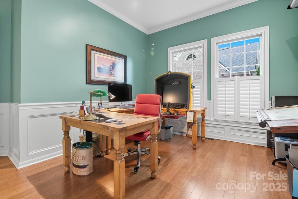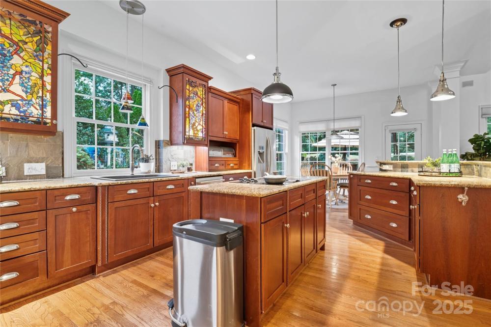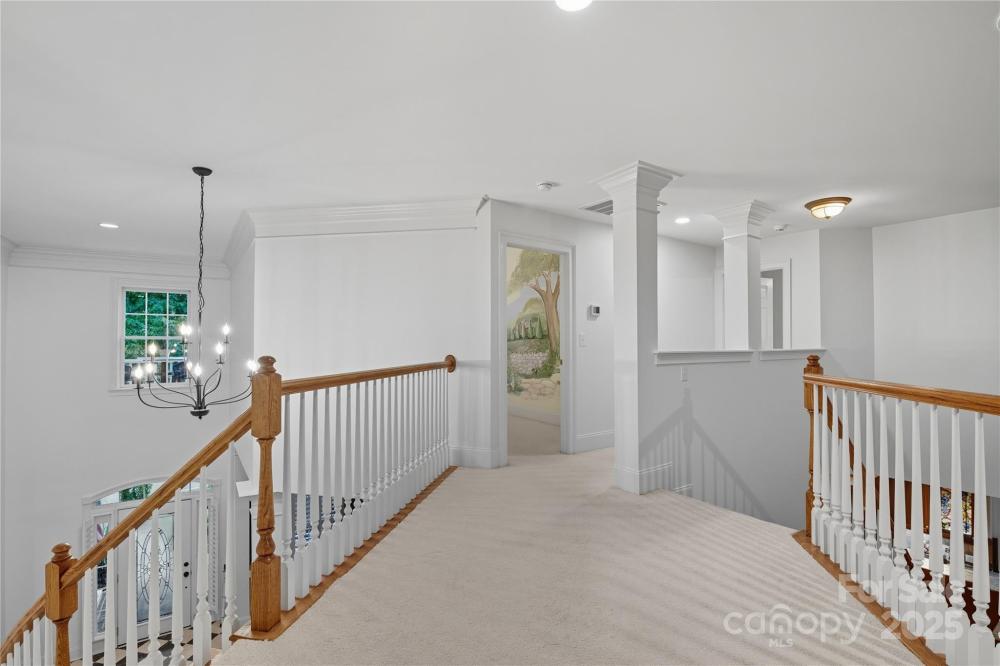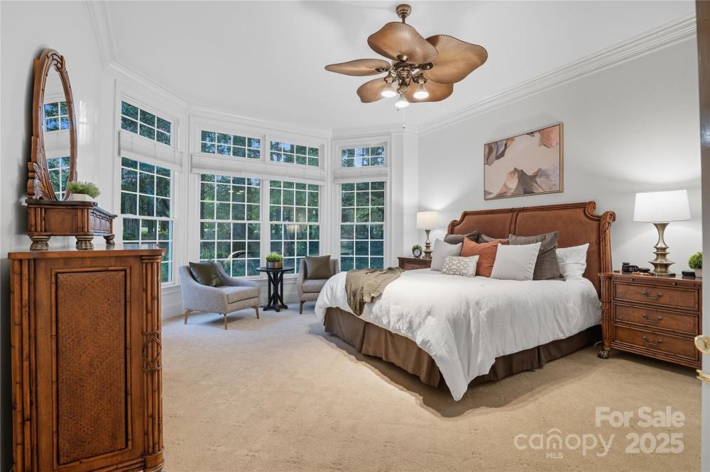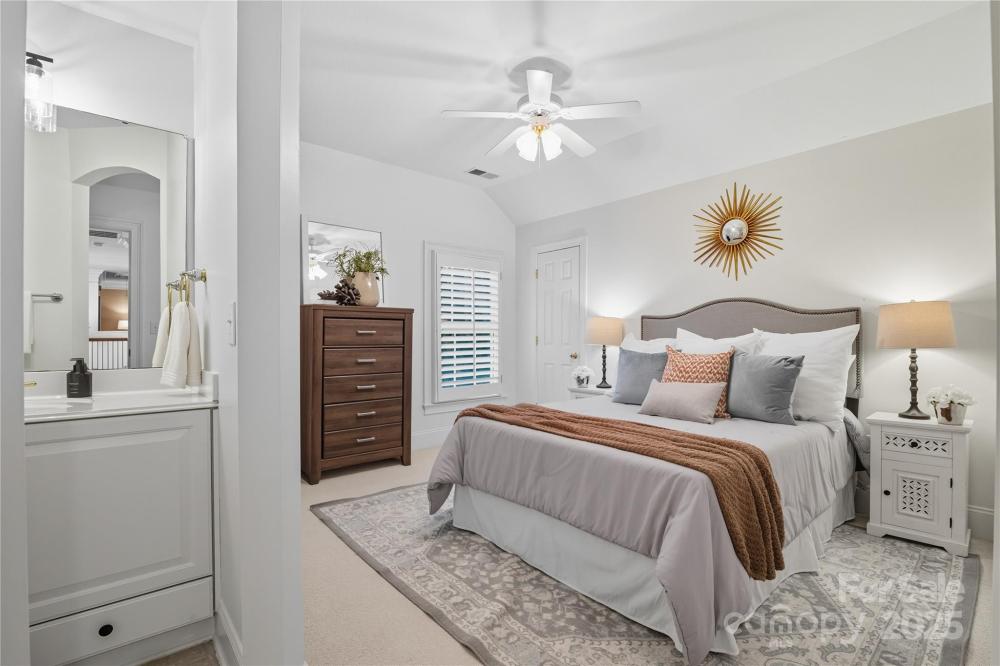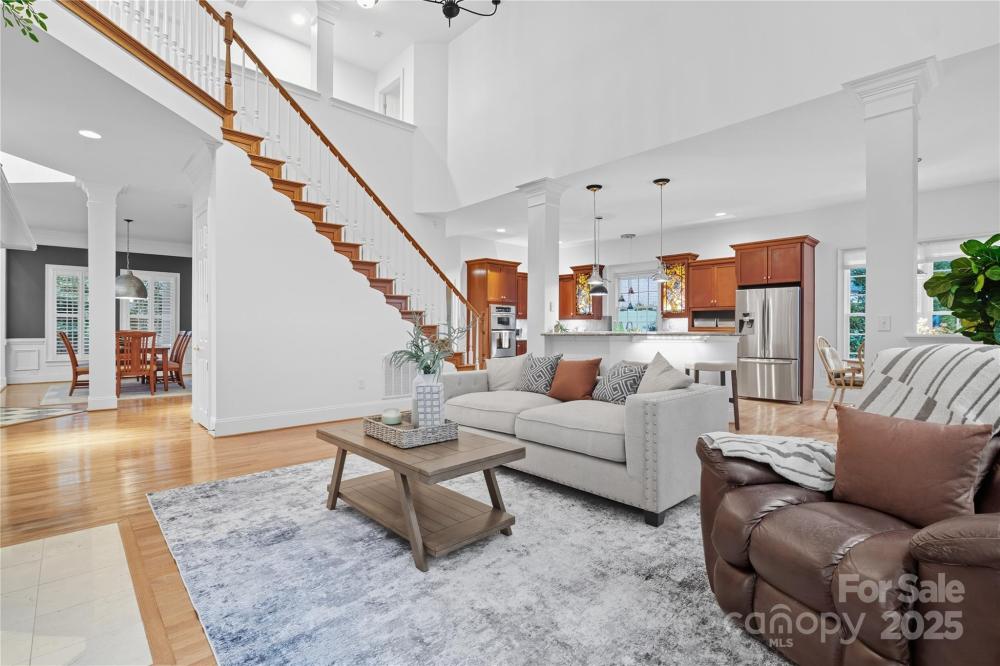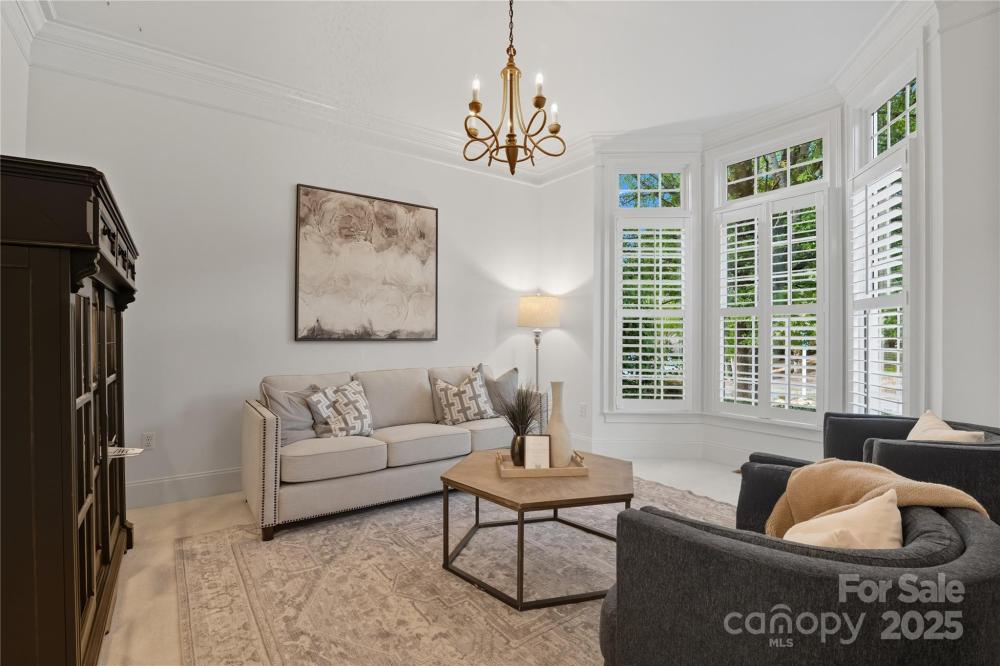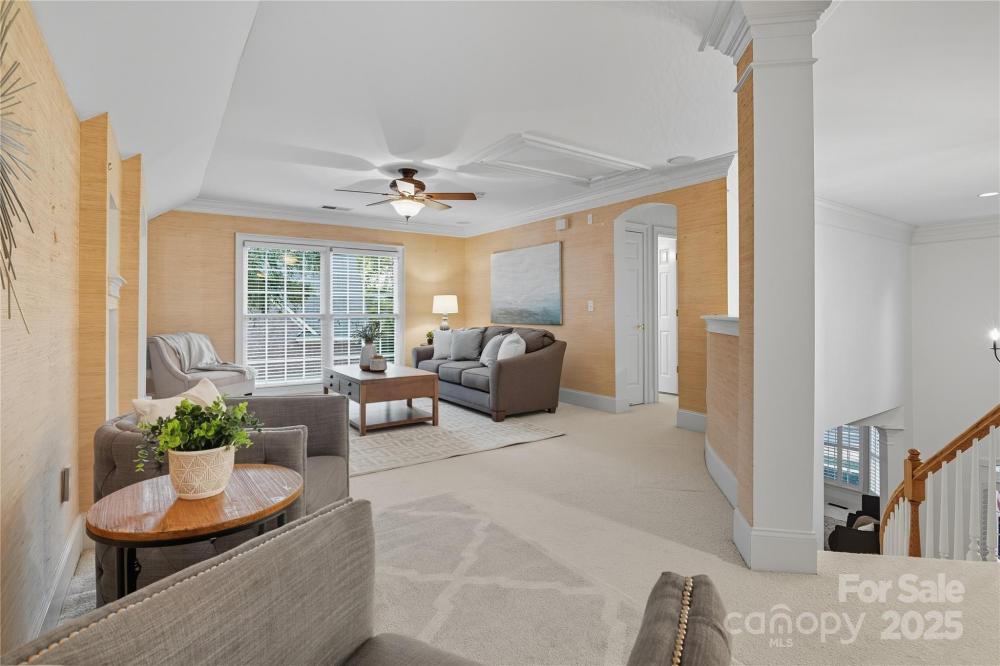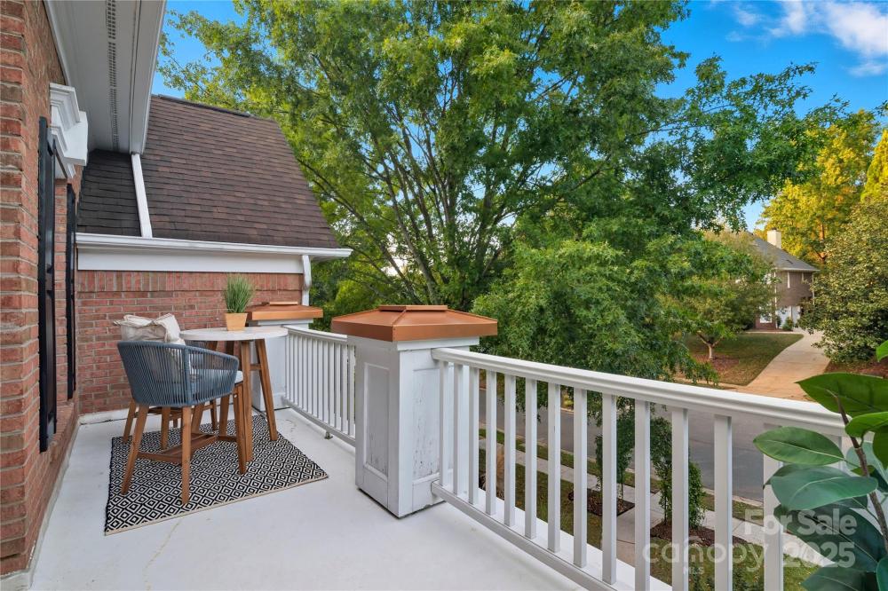 Welcome to 15915 Knox Hill Road, an elegant residence in the highly desirable "The Links" section of Birkdale. Homes in this enclave seldom come to market, and this property stands apart with its golf course setting and generous 0.48-acre lot. The approach is timeless, with mature landscaping, a secondary walkway, and a deep front porch with swing. Inside, a two-story foyer opens with checkerboard travertine floors and a graceful curved staircase. Freshly painted interiors highlight classic details: plantation shutters, deep crown molding, French doors to a private office, and a formal sitting room at the front of the home. The two-story living room is both open and inviting, with vaulted ceilings and tranquil views of the backyard, where mature trees frame the golf course beyond. The adjoining kitchen is thoughtfully designed with granite counters, center island, deep sink, and a walk-in pantry with custom wood shelving. The main-level primary suite features a bay window, ensuite bath, and spacious walk-in closet. Upstairs, you will find an open loft, a private ensuite bedroom and a pair of jack-and-jill bedrooms, each with its own sink. From one bedroom, doors open to an estate-style balcony creating an idyllic retreat. A second staircase returns you to the kitchen for an easy flow of living. Outdoors, step onto the deck to take in the views of the deep backyard, where landscaping and a garden shed styled with a faux chimney create a charming, almost secret-garden setting, with the golf course just beyond. A new roof is scheduled to be installed on October 6th, 2025, providing peace of mind for years to come. This home also includes a one-year home warranty from America’s Preferred Home Warranty for added assurance. Recent updates include a tankless water heater, encapsulated crawlspace, and established cool-season grass that remains green year-round. Life in Birkdale offers more than a home, it offers community. Amenities include a pool, clubhouse, tennis/pickleball and basketball courts, playgrounds, and year-round events, all with convenient access to Birkdale Village and Uptown Charlotte. This residence in The Links at Birkdale brings together elegance, comfort, and setting on nearly half an acre. A rare opportunity, waiting to be experienced.