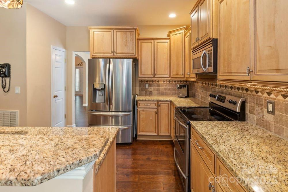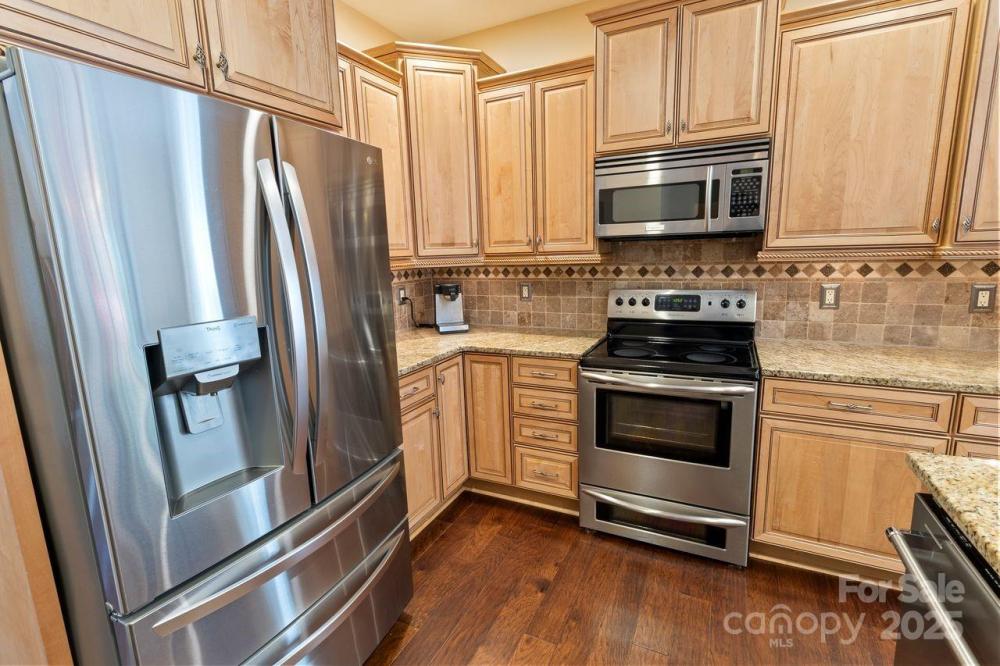 This spacious and well-appointed home offers approximately 2,800 square feet of living space, with five bedrooms and three-and-one-half bathrooms. Situated on a lush 0.2-acre lot, this property boasts a scenic landscape with abundant greenery and expansive grounds, providing a serene and private oasis. The inviting entryway leads into a spacious and open floor plan, allowing for natural light to flood the interior. Beautiful flooring throughout the home creates a warm and elegant ambiance, complemented by the home's architectural details, such as the elegant arched windows. The living area features a cozy fireplace, offering a comfortable gathering space. The kitchen is a true highlight, offering an abundance of sleek cabinetry and gleaming granite countertops, providing ample preparation and storage space. The adjacent dining area is ideally suited for hosting gatherings, with the abundance of natural lighting enhancing the inviting atmosphere. The primary bedroom is a true retreat, with a spacious layout and a ceiling fan to provide comfort and relaxation. The en-suite bathroom is a luxurious oasis, with natural lighting to create a spa-like ambiance. Outside, the home boasts a spacious covered porch and an inviting patio, great for enjoying the scenic wooded views and the lush landscaping. The expansive outdoor living space allows for ample opportunities to entertain or simply relax and unwind. This exceptional property offers a harmonious blend of indoor and outdoor living, providing the ideal setting for those seeking a peaceful and private sanctuary.