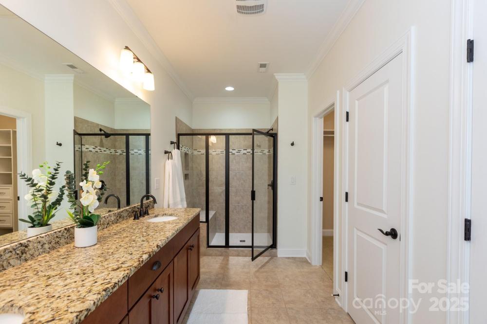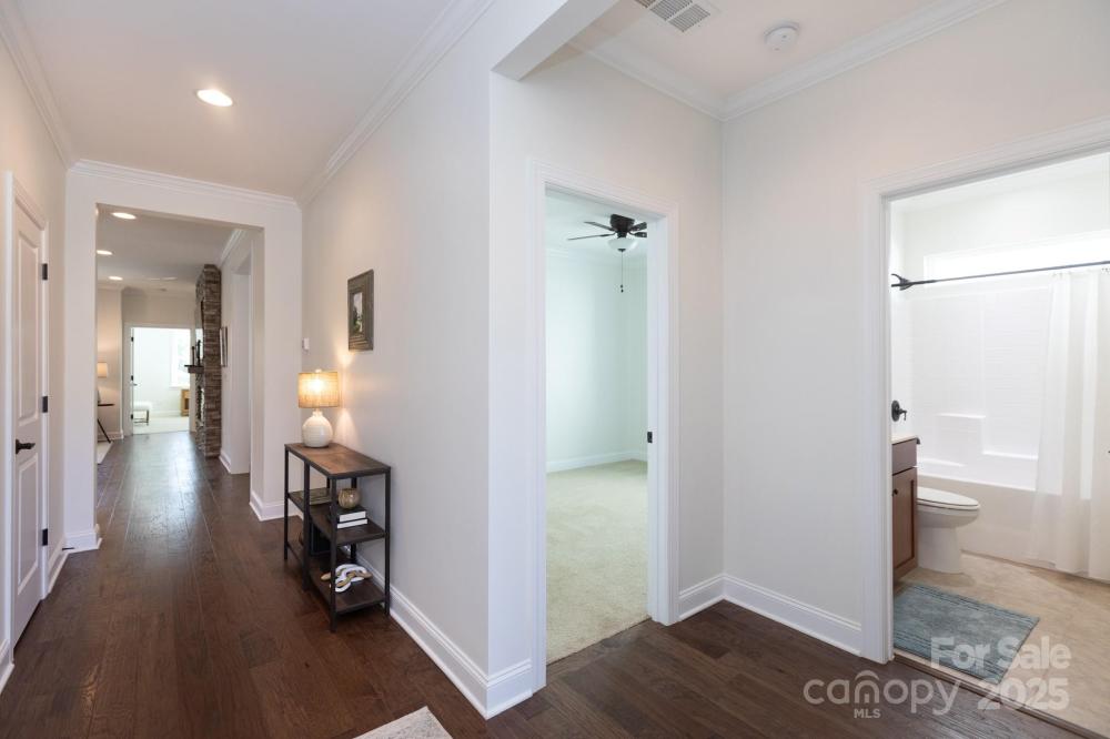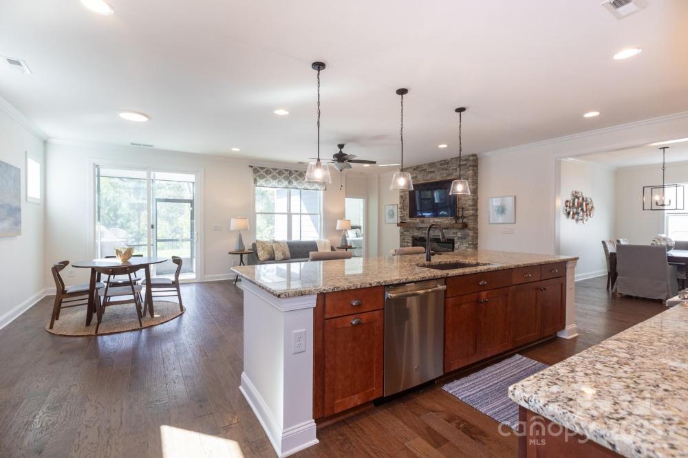 Lightly lived-in and beautifully upgraded, this home is in Trilogy Lake Norman, a premier gated 55-plus community. 5002 Looking Glass Trail sits on a premium lot backing to a wooded common area, offering privacy from your screened porch, paver patio with grilling station, and gas fire pit. Inside, you’ll find hardwood floors in the entertaining areas, fresh paint throughout, and a striking stacked-stone electric fireplace (TV above conveys). The kitchen features a gas range, vented microwave, under-cabinet lighting, soft-close cabinetry, and a spacious island with excellent prep space. A flex room, currently used as formal dining, complements a breakfast/lounge area.