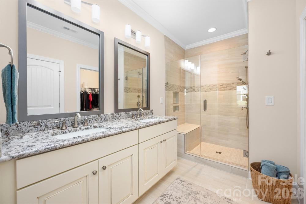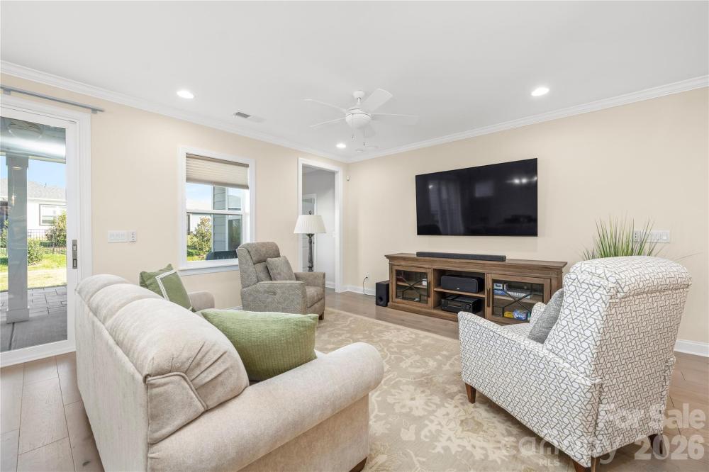This home has it ALL! Stunning 3 bedroom/3 bath + den move-in ready home in the gated, amenity rich, 55+ Community of Trilogy Lake Norman! The ever-popular Affirm w/ loft floor plan includes the "Got to have it! " (top level upgrade package) plus many extras! This like new home provides an open split bedroom layout w/ beautiful hardwood floors throughout the first floor! Gorgeous kitchen w/ cream cabinets, oversized island w/ granite countertops, under cabinet lighting & top level KitchenAid appliances overlook a large great room & dining area. Large primary bedroom & bath w/ tile floors, large tile shower, dual vanity w/ granite countertops & WIC. A second bedroom, study & a full bath are off foyer. Upstairs you will find a large loft area, and third bedroom with en suite bath-perfect for hosting guests. The back yard is an outdoor lovers dream, a rolling wall of glass leads to a covered porch overlooking a 10x20 paver patio and a premier flat fenced irrigated yard. A freshly painted, 2-car garage with 2ft extension, utility sink, built-in shelving, and cabinets allow for tons of extra storage. Additional upgrades include Hunter Douglas Motorized Window Blinds, upgraded crown molding, radiant barrier sheathing, tiled showers in both secondary baths, buried downspouts, recessed lighting throughout, and exterior gas line for grill (full list attached). Trilogy Lake Norman amenities include a club house, indoor and outdoor pool, hot tub, restaurant, tennis and pickle ball courts, billiard room, full time activities director, membership in freedom boat club and much more (full list attached). This home is a MUST see!