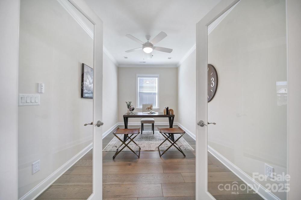 This home showcases the Connect floor plan with an open-concept design and easy-care wood and tile flooring. The kitchen is equipped with stainless steel appliances, abundant storage, generous counter space, a large island, and an adjoining dining area. The spacious primary suite features an ensuite bath, while two additional bedrooms share a full guest bath. A private office or den with French doors offers flexible space for work or hobbies.