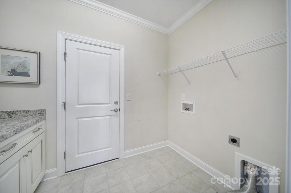 The great room includes a wide sliding glass door that opens to a covered, screened patio, creating a seamless connection between indoor and outdoor living. A rear gas line is ready for a grill, making entertaining simple. The laundry room features added cabinetry and connects directly to the garage for extra convenience.