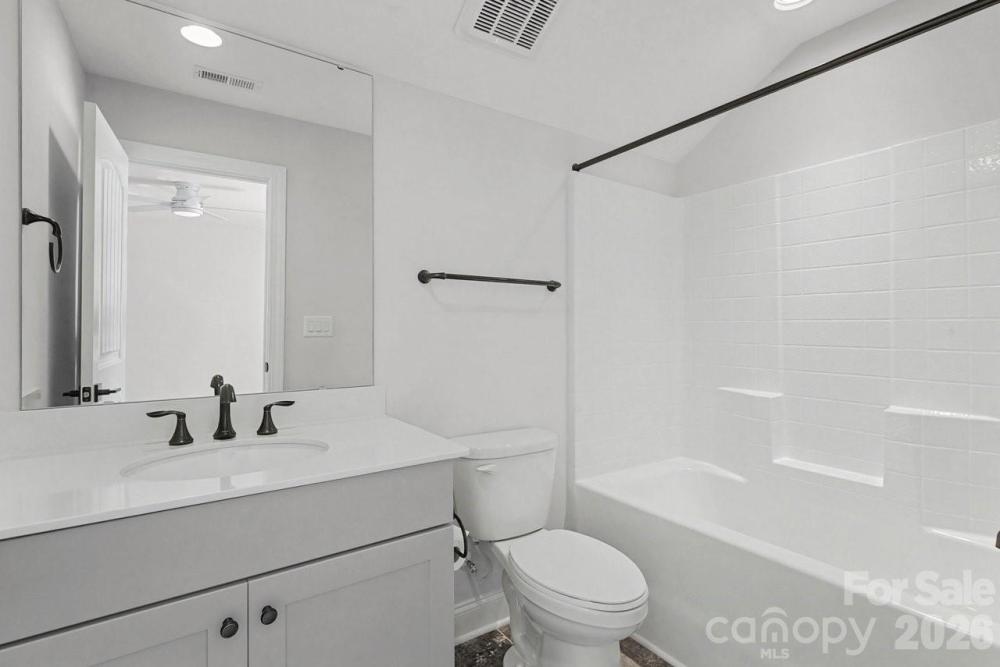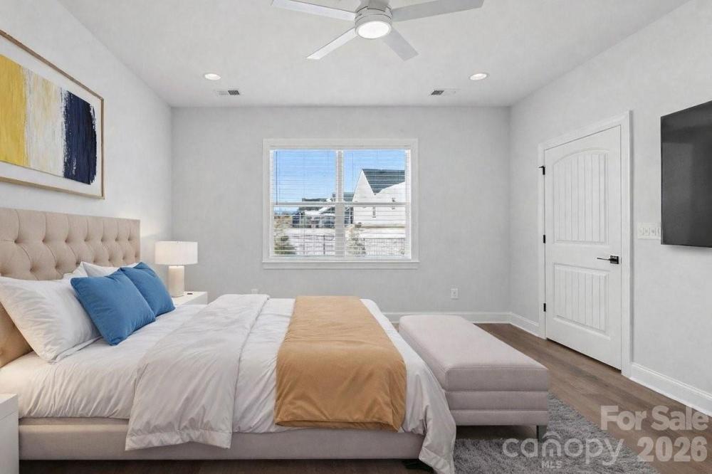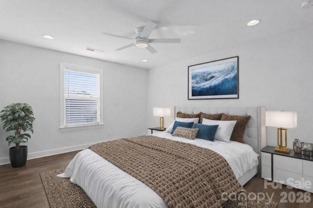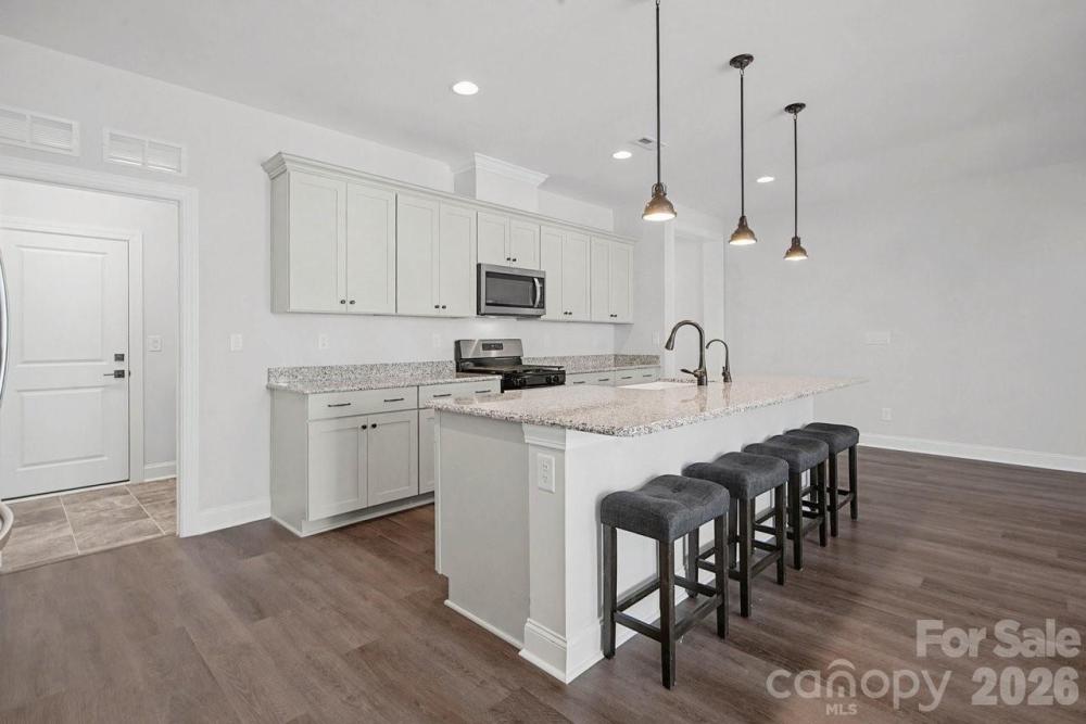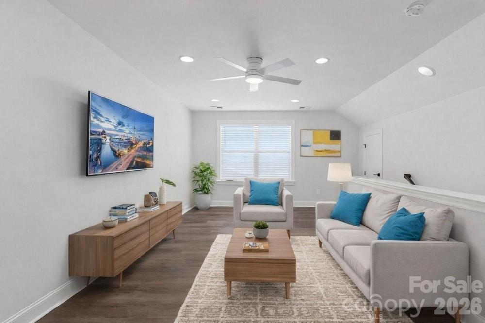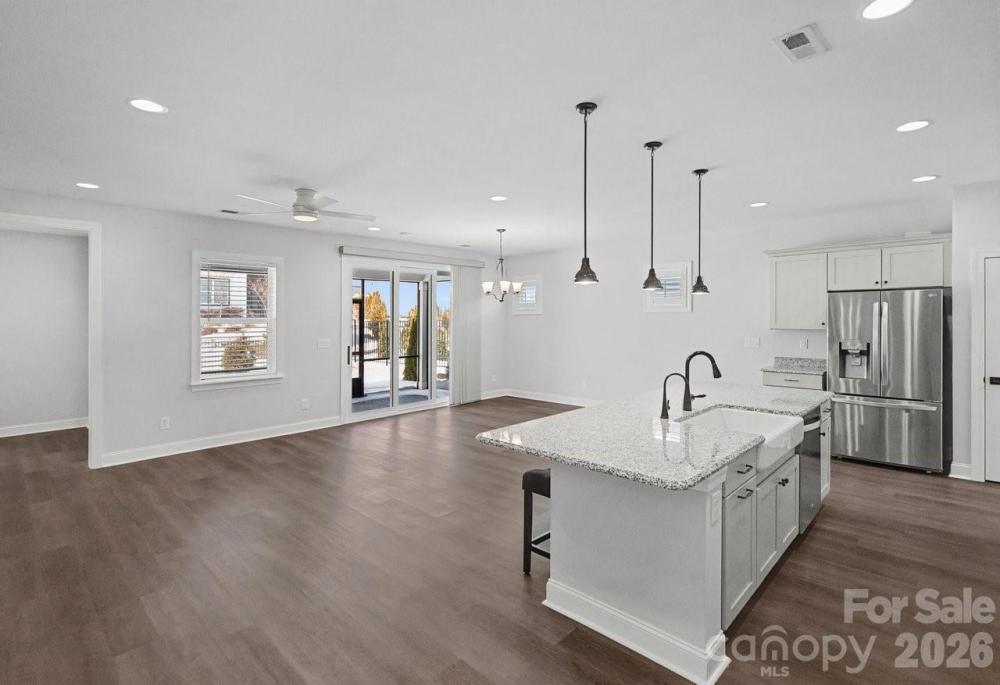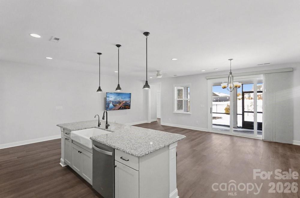 The Affirm Loft features a generous multi purpose, open, flowing floor plan. Exceptional kitchen with amazing storage/counter space, SS appliances, refrigerator, gas range, tile back splash and island breakfast bar that opens to the great room with wall mounted TV included. Dining area with wall of glass opens to a covered and screened Lanai that features an extended paver patio gas fire pit and grill connection plus a fenced yard for added entertaining options. LVP flooring throughout (no carpet) the home. Recessed & designer lighting, custom blinds and a multi use flex/office space with doors adds privacy. Primary bedroom includes an en-suite bath with dual sink vanity, walk in closet & tiled shower. Main floor has an additional guest bedroom with central bath, laundry room w/added cabinetry, (washing machine and dryer included) that connects to the 2 car extended garage. Upstairs is highlighted with an additional guest suite & full bath, 2 walk in closets providing excellent storage & family room area to spread out and relax (wall mount TV included). Trilogy Membership include Freedom Boat Club on Lake Norman plus award winning amenities