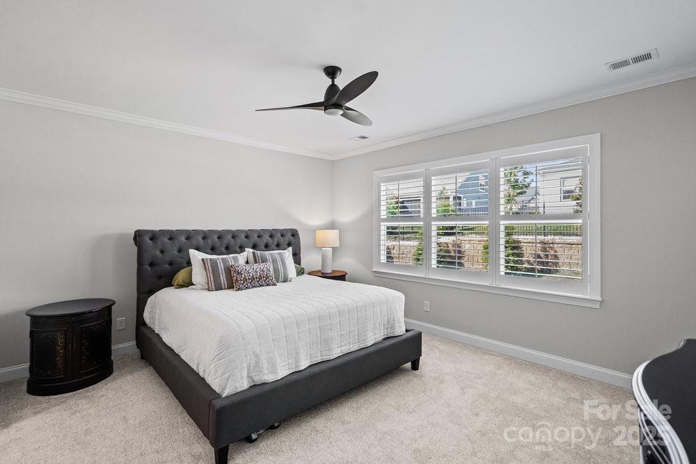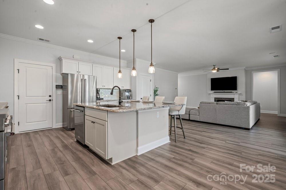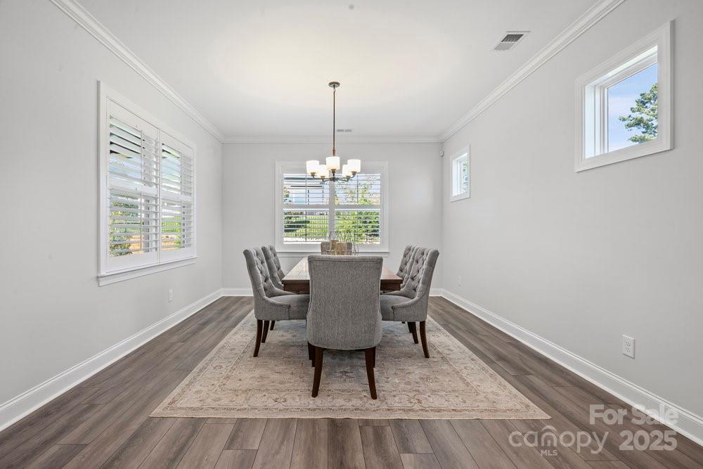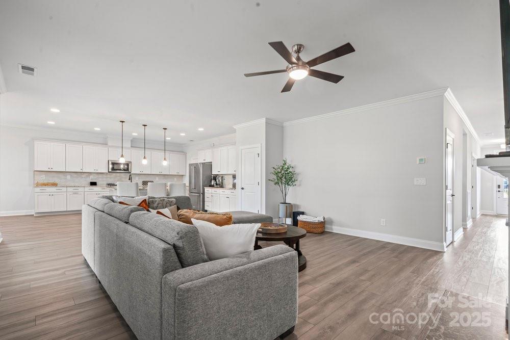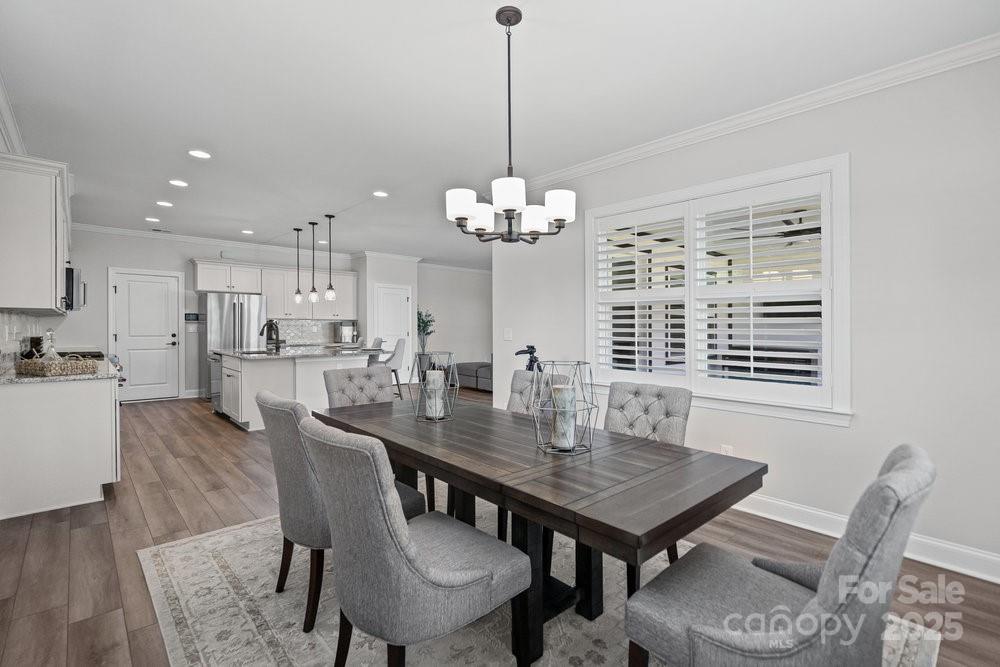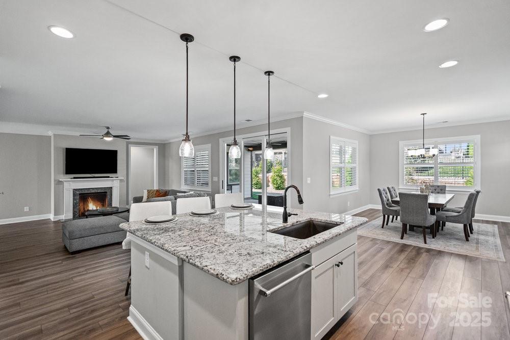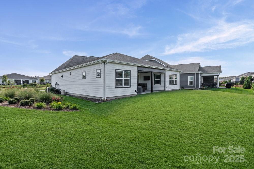 Like new Proclaim floor plan (Blue Ridge Elevation) with a commanding use of function and space. Common areas to the front and side of the home. Exceptional kitchen features amazing storage and counter space, Upgraded KitchenAid appliances, gas range, tile back splash, large island breakfast bar and solid surface counter tops. Extended dining area for large gatherings, crown molding, plantation shutters and recessed lighting. Grand primary bedroom and en-suite bath with dual sink vanity, walk in closet and tiled shower, Office/den flex space has French doors for privacy. 2 additional guest bedrooms with central bath plus an additional half bath. Great room is highlighted with a gas log fireplace and wall of glass that slides open to the covered patio expanding in & outdoor entertaining options. Laminate wood, carpet & tile floors for easy maintenance. Epoxy floor in extended garage adds additional storage. Trilogy Membership include Freedom Boat Club on Lake Norman plus award winning amenities