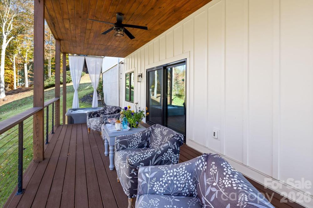 Experience modern elegance and breathtaking golf course views in this custom 2023-built masterpiece, perfectly situated on the 4th hole of Verdict Ridge Country Club. Nestled on a peaceful cul-de-sac, this 5-bedroom, 3.5-bath home boasts over 3,200 sq. ft. of thoughtfully designed living space, blending luxury and functionality at every turn. Step through the dramatic 20+ ft vaulted entry and into a light-filled interior that exudes contemporary sophistication. Dual office spaces offer versatility for work or study, while 10-ft ceilings, 8-ft doors, and oversized 8x12 sliders create an effortless flow between indoor and outdoor living. The open-concept design leads to a spacious sun deck, where you can take in panoramic views of the Virdict Ridge Golf Course and surrounding wooded landscape—a true sanctuary. The sleek kitchen, a modern chef’s dream, showcases quartz countertops, stainless steel appliances, and a butler pantry for seamless entertaining. Anchoring the great room is a striking floor-to-ceiling stone fireplace, adding warmth and style to this inviting space. Upstairs, the serene primary suite offers a private retreat with tranquil treetop vistas and a spa-inspired bath featuring a dual-head walk-in shower and overhead waterfall. The fully finished walkout basement expands your living options, complete with additional lounging areas, a covered porch, hot tub, and unrivaled views of the creek and golf course—your private escape to unwind. Thoughtful touches like a drop zone and laundry room ensure daily convenience without compromising on the home's sophisticated charm. This home is more than just a place to live; it’s a modern haven that perfectly balances elegance, comfort, and the beauty of golf course living.