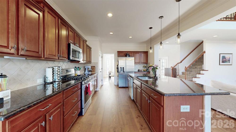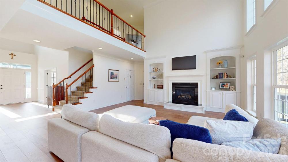 Elegantly built home in the highly sought after Verdict Ridge community and nestled on a quiet cul-de-sac on a majestic wooded lot. This five-bedroom, three–full bath home features a stunning two-story great room with floor to ceiling windows that flood the home with natural light. The spacious kitchen is designed for both everyday living as well as entertainment, complete with a large island and breakfast nook. Recent upgrades include brand new hardwood flooring that adds warmth and timeless style throughout the main living areas. A private guest suite conveniently located on the main level offers ideal accommodations for visitors or multi-generational living. A private home office offers a quiet and functional workspace. The private primary suite features a spacious walk-in closet and a well-appointed ensuite bath, creating a comfortable retreat. A sunken bonus room on the second level for a media room or activity room. The full, unfinished walk-out basement provides endless opportunities for customization and expansion, as well as endless storage. The two car garage is equipped with a built-in workbench, providing an ideal space for projects, hobbies, and organized storage. Memberships are available to Verdict Ridge Golf & Country Club for access to resort style amenities including golf, swim and club. This amazing home is located in top rated Lincoln County schools, and offers convenient access to Lake Norman, Charlotte, Hickory, and Statesville. (Golf course and country club is a separate membership. See verdictridge.com)
