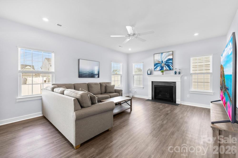 Inside, low-maintenance luxury vinyl plank flooring runs throughout the main level, bathrooms, and laundry room. Just off the entry, a versatile flex room can easily serve as a home office, den, playroom, or additional living space to suit your needs.