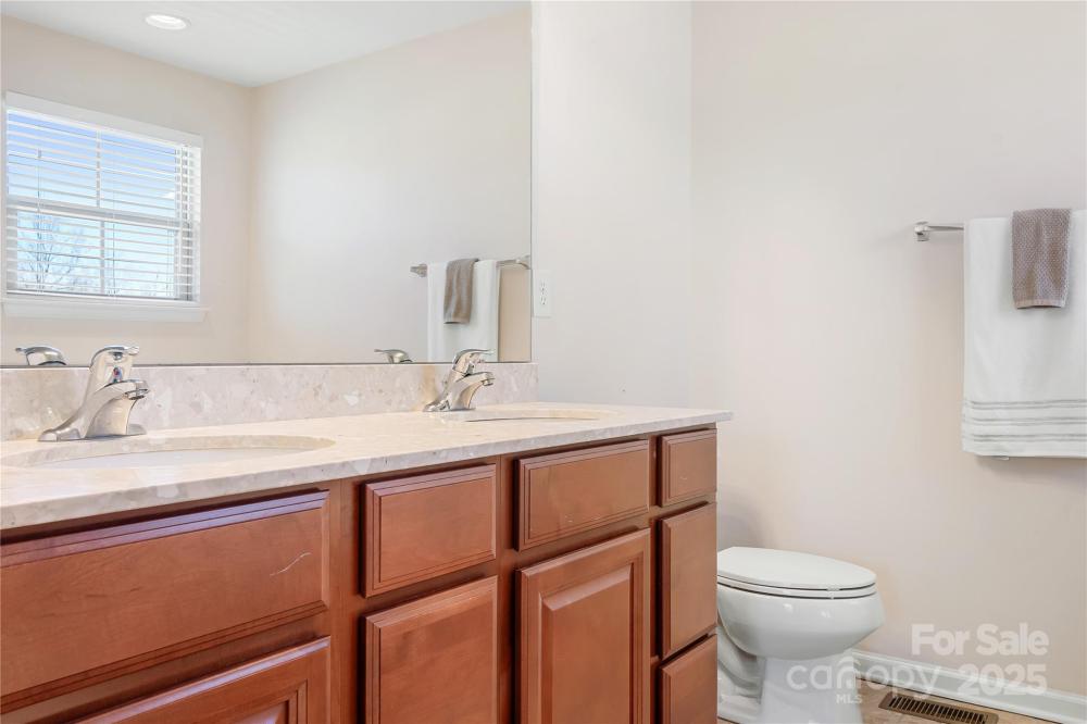 This home offers a fantastic location and ample space. Upon entering, you are greeted by a cozy sitting area/office. The open layout of the family room, kitchen, and dining area provides an excellent setting for entertaining. The dining room is filled with natural light. Kitchen is well-equipped with plenty of cabinets, a gas range, breakfast island, and pantry. Upstairs, you will find a spacious primary bedroom that features a walk-in closet and an en-suite bathroom, which includes a tiled shower, a soaking tub, and double vanities. There is also a laundry room, along with three additional bedrooms and full bathroom with updated tile shower. If you're looking for more space, a large basement is available, featuring a bonus room, a full bathroom, flexible space for an exercise room and additional office/bedroom, plus storage area. Sliding glass doors in the basement lead out to the backyard and patio. New Carpet upstairs/downstairs, new HVAC unit (transferable warranty with Morris Jenkins) in 2025, freshly stained deck, and fenced backyard. Two car garage with keypad. The community also offers a pool and is conveniently located near Hwy.16, restaurants, shopping, and LKN.