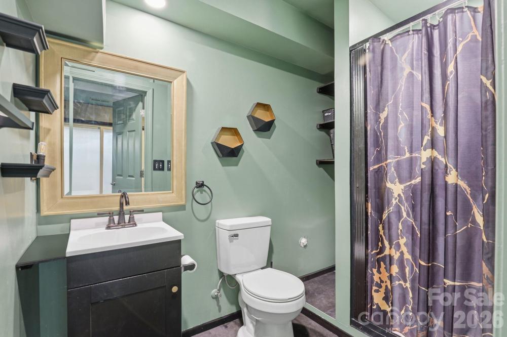 The full basement offers a private apartment-like area with family room, kitchenette and full bath as well as a bedroom area tucked away from the rest of the space.