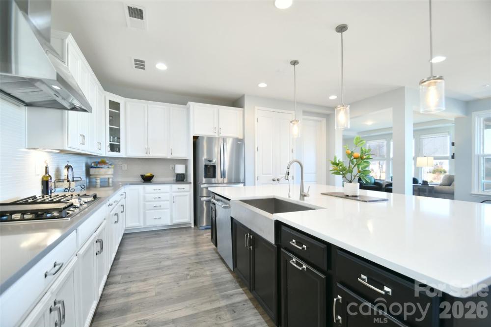 HUGE PRICE IMPROVEMENT- now the lowest price per sf with a basement in the Hough district! You won't find these upgrades and floorpan in new construction! Preferred lender offering huge limited-time lender credit plus free appraisal with seller-accepted offer. Beautifully situated on a premier private lot in the highly desirable Walden community, your new home is thoughtfully designed with 5 bedrooms, 5.5 bathrooms. Providing exceptional comfort for modern living, this home also includes a versatile office/den/bedroom on the 2nd floor complete with its own full bath. Step inside to an open-concept main level ideal for entertaining, featuring a gourmet kitchen with GE Café Series appliances, quartz countertops, elegant glass cabinetry, a large center island, and abundant storage. The primary suite is a serene retreat on the main level with 4” plantation shutters, a spacious custom walk-in closet, and a spa-inspired ensuite bath. Every bedroom boasts its own private bathroom. Additional enhancements include epoxy floors in the garage, a 4-ft extended garage length, widened driveway, and a large unfinished storage room in the basement with the potential to be finished to suit your needs. Pre-wiring for audio and security adds modern convenience. The backyard is a true oasis—super private and perfect for entertaining. Enjoy Techo-Bloc Blu pavers, a stylish retaining wall, a fully equipped gazebo with bar, intimate gas fire pit, and an outdoor kitchen featuring a commercial-grade grill and dual burners. With ample space to add a pool, the possibilities for creating your dream retreat are endless. Attractive custom woven wood/grass Roman shades in the family room add warmth and character. Located within minutes of Birkdale Village, Lake Norman, parks, greenways, NorthStone Country Club, the U.S. National Whitewater Center, golf, dining, and quick access to I-77 and top-rated schools—this home delivers the ultimate Huntersville lifestyle in a top school district. Outdoor charm meets modern luxury in this one-of-a-kind property. Don’t miss this exceptional opportunity! * rendering of pool are digitized and are shown to depict a possible future pool