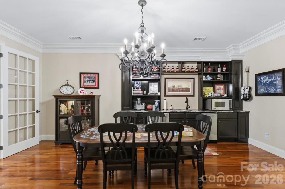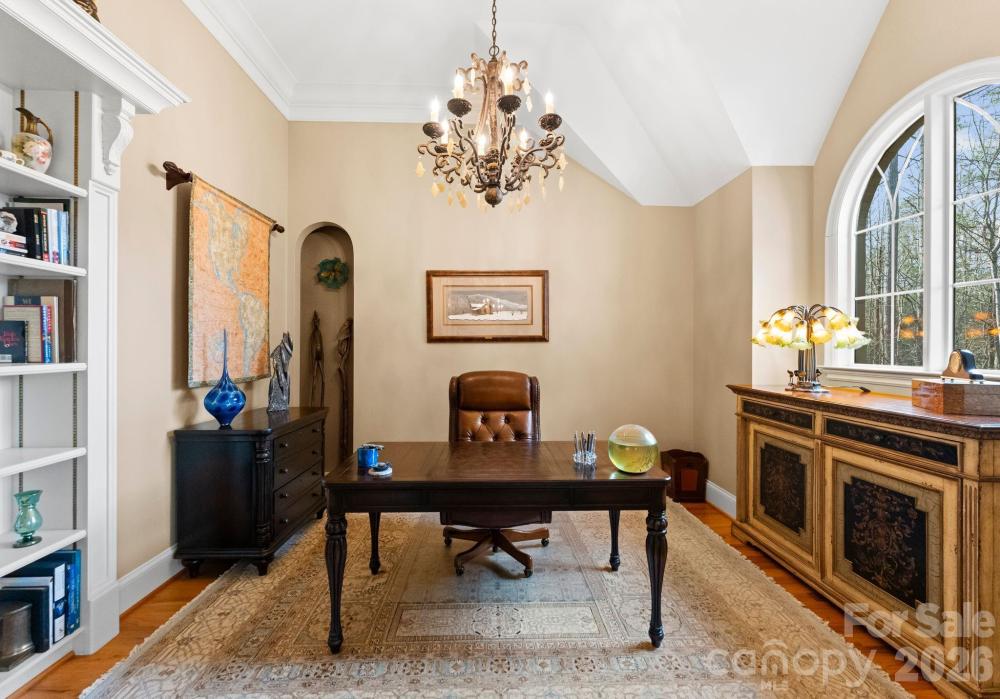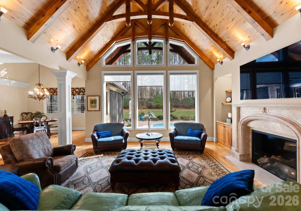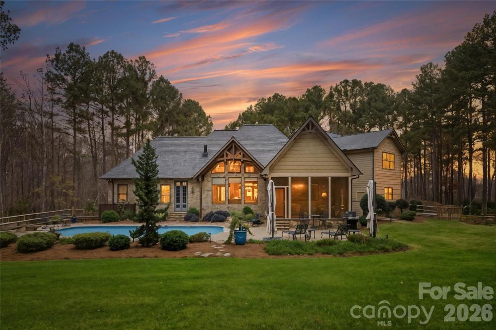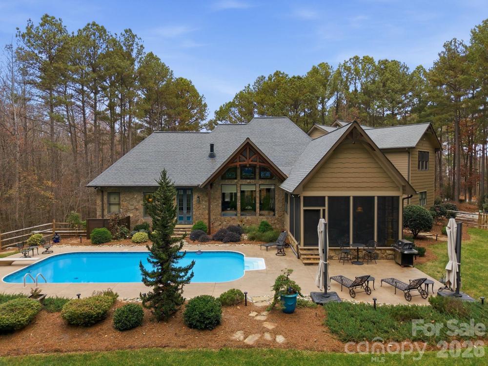 Discover refined craftsmanship and Colorado lodge–inspired luxury on nearly five private acres located in the Webbs Chapel gated community. This impressive Craftsman-style residence invites you in with soaring vaulted ceilings in multiple rooms, including a stunning wood-clad vaulted Great Room accented with custom architectural details. Designed for comfort and efficiency, the home features two sequential water heaters with a hot-water circulator, three-zone heat pumps, LED lighting throughout, and a comprehensive security system with Fire/CO/Glass Break protection plus seven exterior cameras. Multiple built-in CAT-5 wired Wi-Fi extenders provide complete home coverage. A dedicated home office with glass French doors and display shelving provides an inspiring workspace. Custom drapes, blinds, and wall treatments elevate every room. AV equipment and wall-mounted 4K TVs convey. The professional main kitchen is a chef’s dream, offering custom cabinetry, Viking range, GE Monogram hood with warming lights, instant hot water, two Bosch dishwashers, and a spacious walk-in pantry with custom shelving. The lower level adds a second kitchenette equipped with a new KitchenAid ice maker, KitchenAid dishwasher, and Viking microwave—perfect for entertaining or multigenerational living. The walk-out lower level is a destination of its own, boasting a large fitness room, custom workshop, game area, and family room. Step outside to a resort-style saltwater pool featuring a variable-speed pump, secondary cleaner pump, and beautifully landscaped patios, including an EZ Breeze sunroom overlooking the grounds. An acre-plus of decorative fencing winds through the wooded backyard, enhanced by extensive exterior landscape and uplighting. The professionally designed grounds showcase hundreds of blooming plants, trees, and shrubs, along with notable stone accents—such as broad stone steps leading to the lower level beyond the side gate. A three-car garage includes epoxy floors, an additional workshop room, a 220V outlet for an electric vehicle, and a separate pool-supply room with exterior access near the AC units. Combining thoughtful design, top-tier systems, and serene natural surroundings, this exceptional property offers elevated living with unmatched privacy and amenities.
