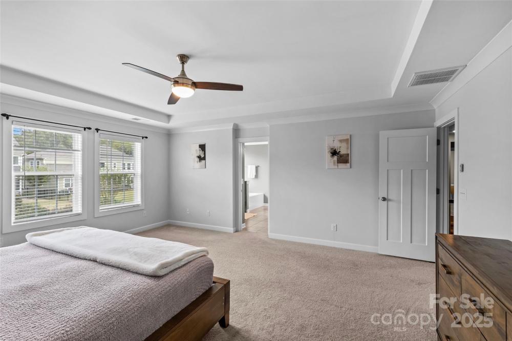 Welcome to your dream home in the heart of charming Davidson! Located within biking distance of downtown and zoned for top-rated schools, this stunning 5-bedroom, 4.5-bath home offers plenty of room to grow. The open-concept main living area features a home office, formal dining space and a bright, modern kitchen with upgraded appliances, a walk-in pantry and large island with quartz countertops, perfect for family gatherings. A convenient main-level bedroom with en-suite bath makes this space perfect for guests or multi-generational living. Step outside to a fully fenced, flat backyard, complete with paver patio and built-in grill, the perfect place to entertain! If storage is on your list of must-haves, go ahead and check that box off now; with a massive L-shaped closet on the main level, built-in mudroom drop zone storage, hanging storage shelves in the garage, and more closets than you can count, this home has it in spades. Additional highlights include sleek epoxied garage floors and a newly installed electric car charging station. Upstairs, a spacious bonus room offers endless possibilities for a playroom, crafting room, work out room or media space. A large primary bedroom with en-suite, three generously sized bedrooms, and two full baths, round out the living space. Don't miss this perfect blend of luxury, functionality, and prime location - schedule your showing today!