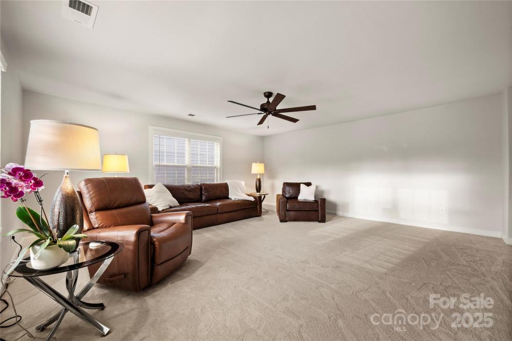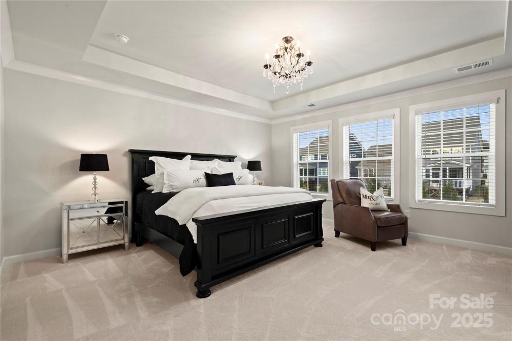 Upstairs, the primary suite includes trey ceilings, a spacious walk-in closet and a spa-style bathroom with garden tub, frameless glass and tile shower, double vanities and a private water closet. A second bedroom includes an en-suite bath, while two additional bedrooms share a full bathroom with double vanity and a private bathing area with shower and toilet, providing optimal function and privacy. A large bonus room adds flexible lifestyle space, and the main-level laundry room enhances convenience.