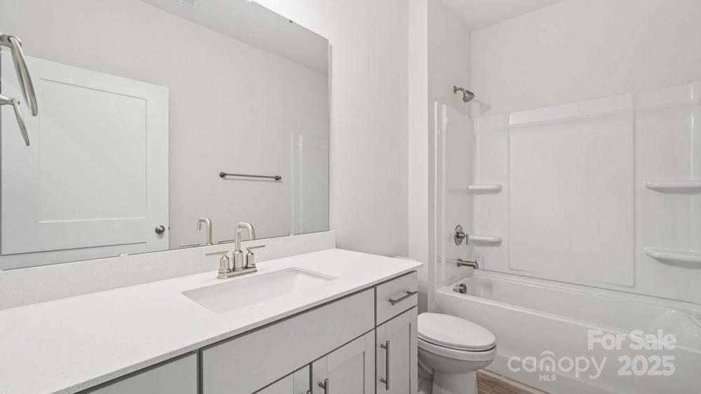 The moment you step inside the home, you're greeted by an inviting foyer that leads you into the center of the home. The family room seamlessly connects with the dining room and kitchen, providing space for entertaining. The chef's kitchen has modern appliances, a pantry closet, and a kitchen island with breakfast bar. The primary suite offers an en-suite bathroom with dual vanities and a large walk-in closet. The additional bedrooms share access to a spacious secondary bathroom. You’ll find a covered patio out back, perfect for outdoor entertaining or enjoying the weather. The Cedar's open layout and single-level living make it the home for you at Westport in York, SC.