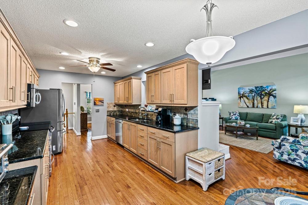 Welcome to this gorgeous brick ranch style home with FROG. The house is located on the first tee of Westport Golf Course, it is in a great walking community, where there is a voluntary HOA and a Community Association. This home is located on a dead end street and is surrounded by mature trees. Enjoy your morning coffee on the screened-in rear porch and watch players tee off. Beautifully maintained and redone when purchased in 2007, upgrades galore. Bright open floor plan with great room that has a gas fireplace for those chilly nights. Great room opens to tiled and screened rear sunroom. All custom cabinets which are impressive in looks and numbers. Granite counters with high end back splash, stainless appliances and sitting area for breakfast. Abundant ceiling fans and down lights in great room and kitchen. Split bedroom floor plan is appealing for all. Primary bedroom overlooks golf course, has plenty of space and is the perfect escape. Ensuite bathroom has tile floors and surrounds, rain shower head, and has dual vanity sinks. Lower level is completely ready for family members who may want to have their own space. Entrance through exterior door, as well as interior. Perfect for multi-generational living, guests or just for entertaining. Separate heat pumps up and down. Upper floor is a great space for work out room, addtional office space, den, etc. Conveniently located in Westport, where you can take a walk to the pool and tennis center. Must join Westport club to use amenities. Information included. Easy commute to Charlotte, close to Lake Norman and public boat accesses.