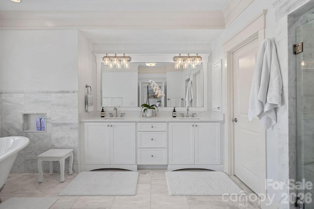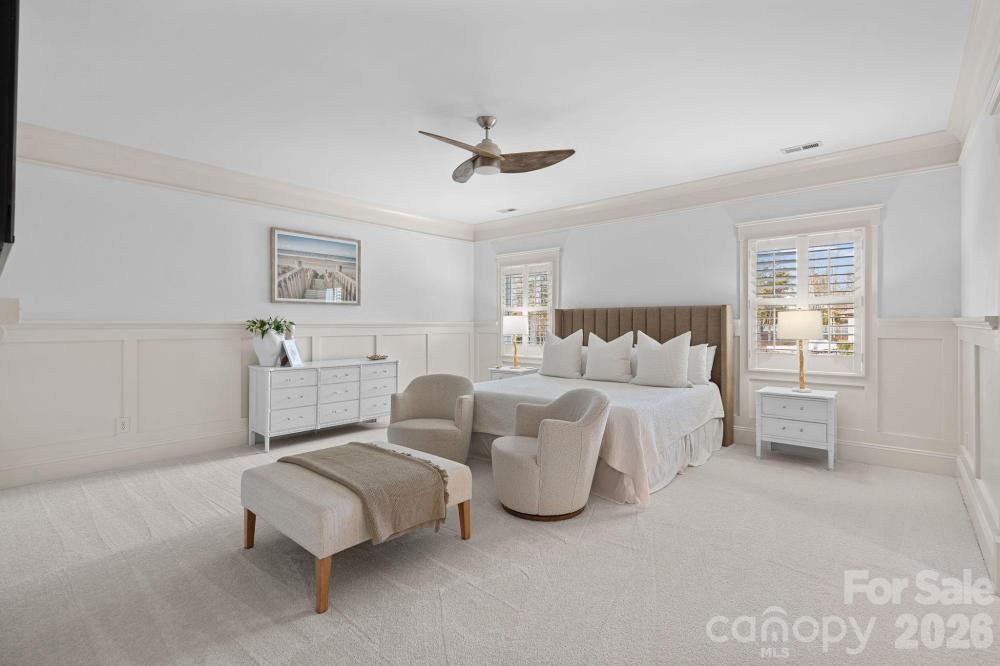 Heated luxury saltwater pool/spa , walkable deeded boat slip, and nearly an acre in The Point - this home delivers the Lake Norman lifestyle buyers rarely find in one property. Thoughtfully updated and move-in ready, this full brick home is designed for both privacy and entertaining and features 10’ ceilings, hardwood floors in the main living areas, and extensive custom trim detail throughout. A welcoming rocking chair front porch sets the tone, while seamless indoor-outdoor flow leads to the 2024 custom heated saltwater pool and spa with tanning ledge, privacy wall, and outdoor grill station. The renovated kitchen includes professional Wolf appliances, custom white soft-close cabinetry, quartz countertops, an extended island, coffee bar, and beautiful backyard pool views. A main-level guest suite and private study offer flexibility, with a second study and bonus room upstairs, ideal for work or retreat. The primary suite overlooks the backyard and features a fully renovated marble bath with soaking tub and rainfall shower. Recent improvements include dual HVAC systems replaced in 2024 with ionizing air purification, a HALO whole-home water filtration system, new carpet in 2025, and a multi-zone irrigation system. Located just a 3-minute walk to the deeded boat slip (Pier M14) and convenient to golf, tennis, pickleball, walking trails, and club amenities, the home is situated within The Point and offers membership to the private club lifestyle of Trump National Golf Club Charlotte. This resort style renovated home is sure to check all of your boxes!