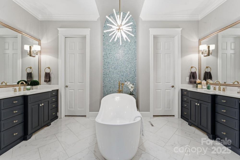 Waterfront Luxury at The Point, Trump National Golf Course This meticulously maintained stucco and stone home, located within the desirable Point Trump National Golf Course community, delivers the ultimate Lake Norman lifestyle, boasting a sandy beach and great water views. Enjoy exceptional privacy and immediate lake access with a newly rebuilt Private DOCK, sitting area and boat lift, complemented by a desirable sandy beach. For complete peace of mind, a whole house generator was installed in 2024. Step inside to an inviting foyer that leads to an executive office/den with a gas fireplace. The open-concept main level is perfect for entertaining, featuring a beautifully updated upscale kitchen with ample workspace and seating, and high-end finishes. The kitchen boasts stylish Quartz counters, a coffered ceiling, Wolf cooktop, double oven, and a built-in microwave drawer, flowing seamlessly into the large breakfast area and the stunning two-story Great Room with a floor-to-ceiling stone fireplace and abundant natural light. The well-appointed formal Dining Room features a chair rail, a stylish chandelier, and a butler's pantry, perfect for formal occasions. Step out to the recently rebuilt, large balcony with Montalcino Porcelain tile highlighting the beautifully landscaped yard, outdoor kitchen, travertine patio and exterior hot tub. The oversized Owner's Suite on the main level overlooks the lake and features a private Juliet balcony and a newly built spa-like primary bathroom designed for luxury. This retreat boasts dual vanities with quartz counters, a soothing soaking tub, a sleek glass shower, and herring bone radiant heated tile floors. The upper level has been updated with new hardwood floors and hosts three spacious bedrooms with newer baths, plus a large bonus room and a comfortable computer work area/loft. The walk-out Lower Level is an entertainer's dream, featuring a full bar/kitchen area, a billiards/recreation room with a gas fireplace, a dedicated theater room, a fifth bedroom, and an exercise room with a sauna. This is a superior home perfectly equipped for gracious lake living and entertaining.