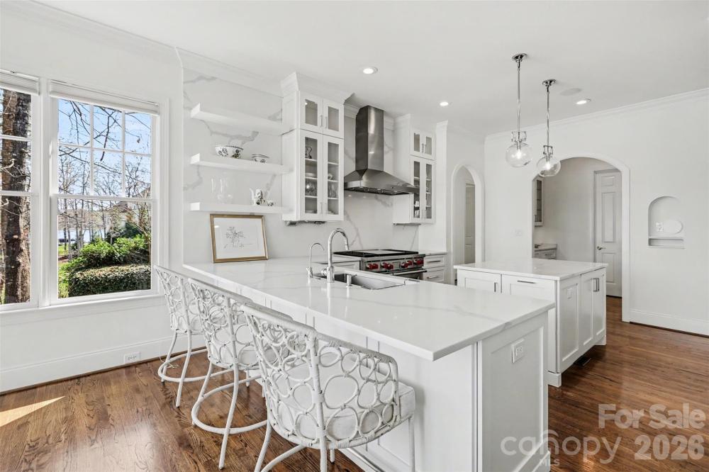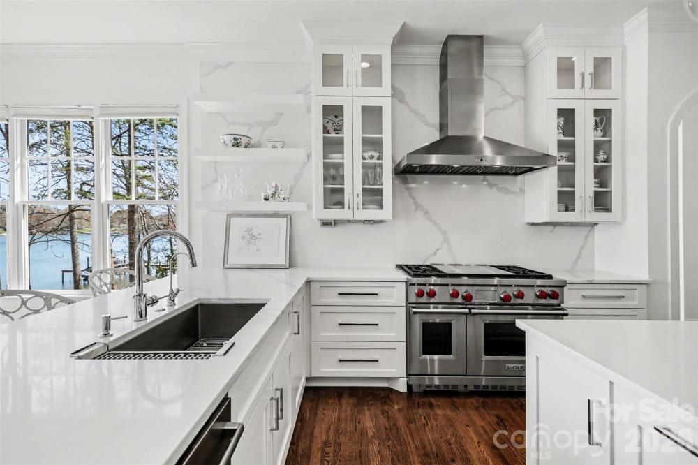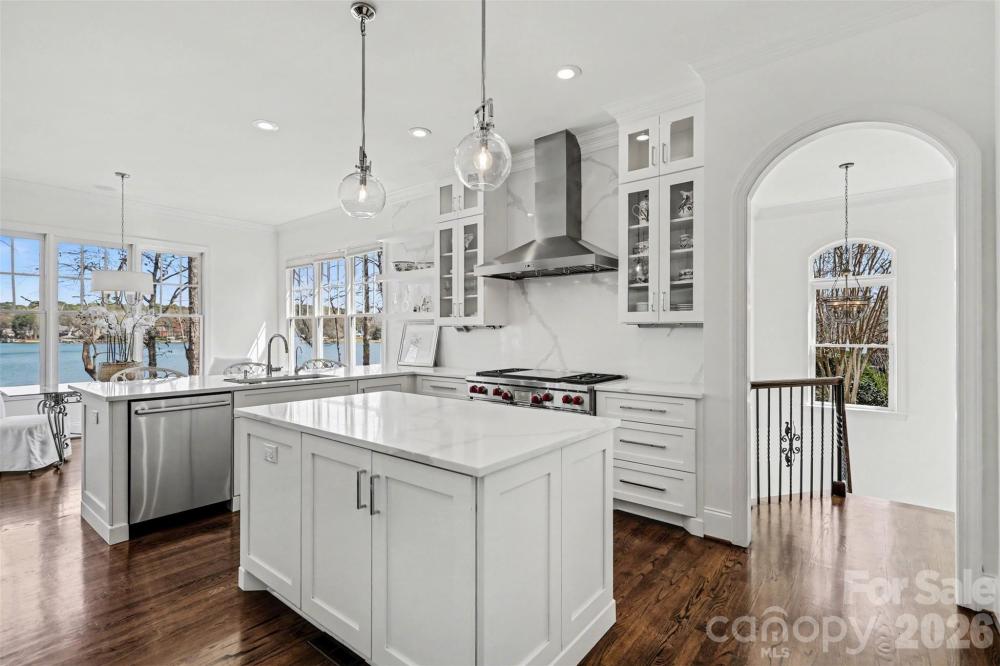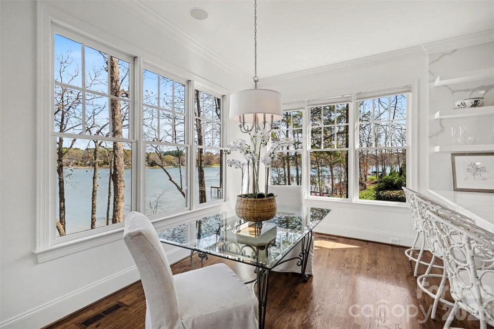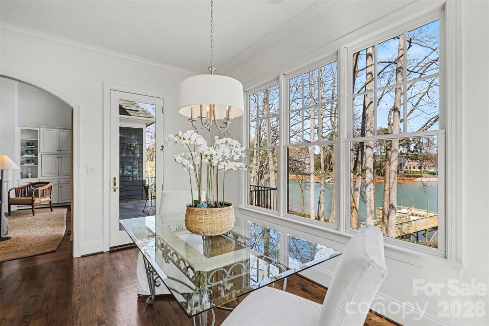 Waterfront Luxury at The Point — Walk to Trump National Charlotte. Welcome to a beautifully appointed waterfront retreat in Phase 1 of The Point, just a short walk from the exceptional amenities of The Club. Perfectly positioned on a professionally landscaped .89-acre lot, this home offers breathtaking water views from nearly every room. With expansive windows designed to capture the beauty of Lake Norman, the home feels as though you're living aboard a luxury yacht. The chef’s kitchen is designed for both everyday living and entertaining, featuring a 48" dual-fuel 8-burner Wolf range, Sub-Zero refrigerator, and an elegant butler’s pantry with illuminated shelving—ideal for showcasing china and glassware. Recently refreshed with fresh interior paint, the home feels bright, clean, and move-in ready. The thoughtfully designed floor plan offers comfortable luxury without excess, with the primary suite and a second bedroom on the main level. The secondary suite—currently used as a private office—includes its own en-suite bath, creating the perfect work-from-home retreat. The lower level expands the living space with two large bedrooms with en-suite baths, along with three additional flexible rooms perfect for a gym, media room, or hobby spaces. An unfinished storage area provides ample room for organization and seasonal items. A convenient dumbwaiter located in the laundry room offers easy access between levels. Step outside to enjoy the peaceful lake setting from the screened porch just off the family room, the perfect place to unwind during quiet evenings by the water. For boating enthusiasts, the property includes a private dock and pier complete with a boatslip and lift, offering immediate access to the open waters of Lake Norman. This exceptional home delivers luxury waterfront living in a thoughtfully sized floor plan, combining elegance, comfort, and an unbeatable location in one of the Lake Norman area’s most sought-after communities. WELCOME HOME!