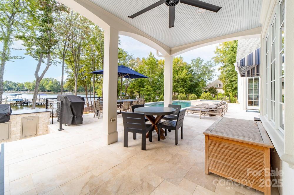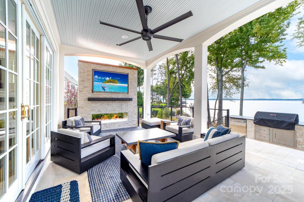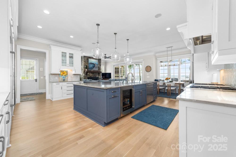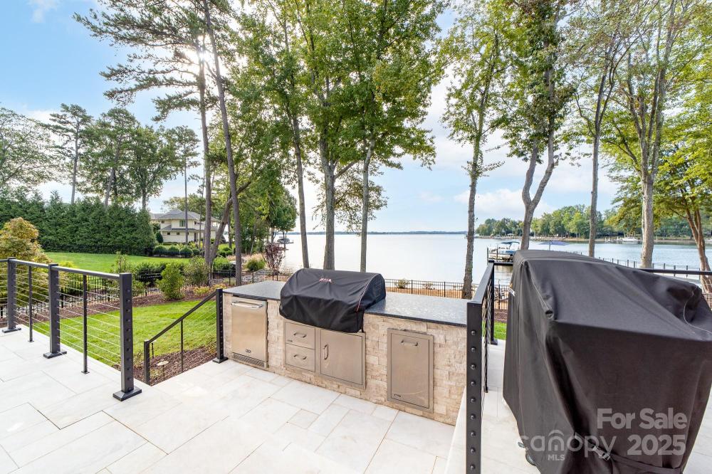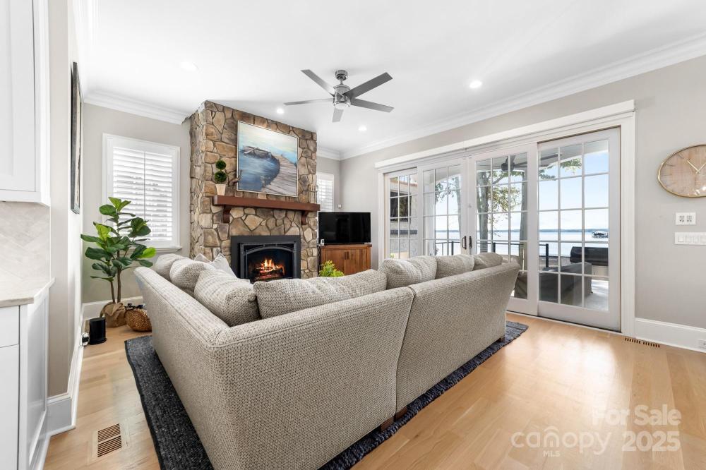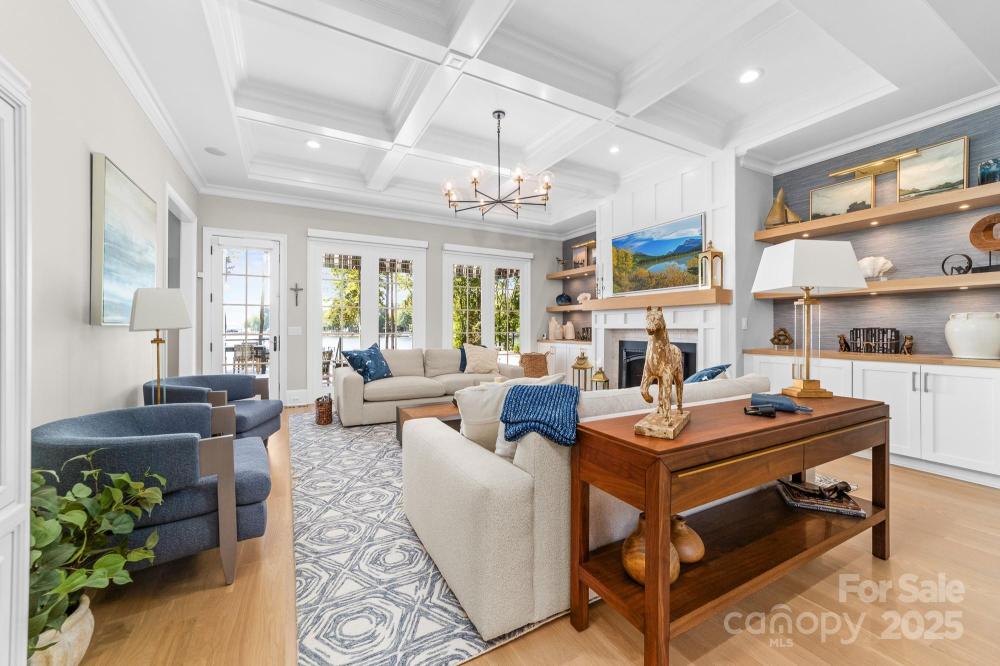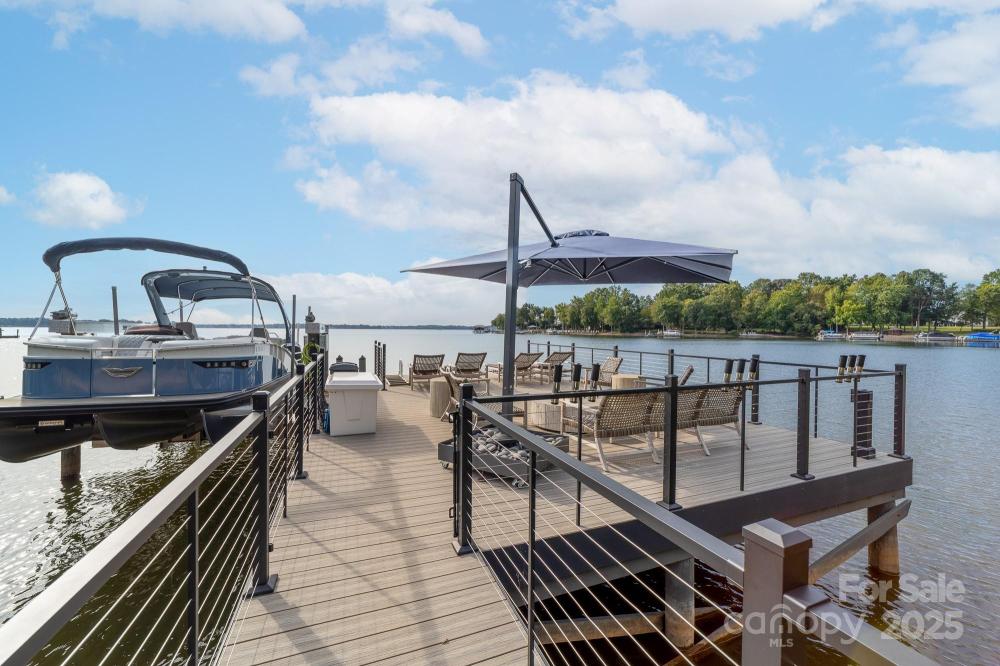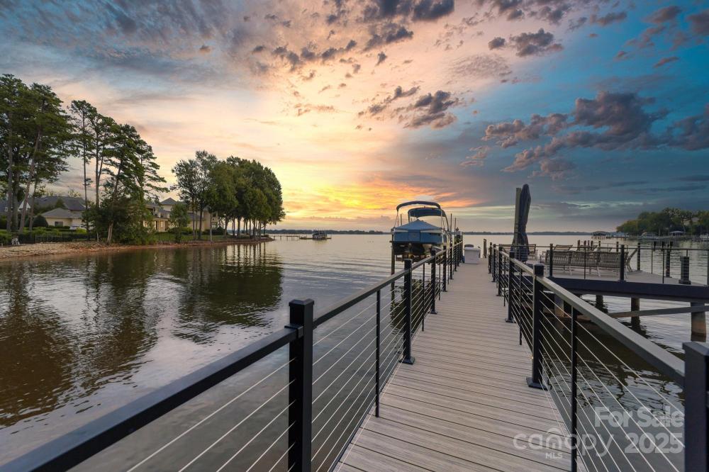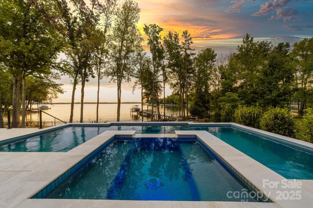 Poised on the shores of Lake Norman in The Point, this extraordinary waterfront residence blends timeless architecture with modern sophistication. A beautifully landscaped lot frames sweeping long-range views, while the backyard reveals a private retreat with a saltwater pool & spa, fenced lawn, sandy beach with fire pit, fresh-water outdoor shower, outdoor dog wash & outdoor grilling area. The expansive dock, recently rebuilt, features a 17,000 lb lift, 50 amps of power & lake-fed irrigation. Inside, a grand two-story foyer opens to a living room with coffered ceiling, fireplace & walls of glass capturing the lake. The gourmet kitchen showcases a massive quartzite island, Sub-Zero 66” fridge/freezer, Wolf range, wine & beverage fridges & reverse osmosis filtration. The main-level primary suite offers lake views, tray ceiling, dual walk-ins & a spa-inspired bath. Upstairs, four gracious en-suites, a flex room with fireplace & laundry provide balance. White oak floors, custom millwork, Hunter Douglas shades, Denon sound system, epoxy garage, instant tankless water heater, encapsulated crawlspace, home generator & whole-house water treatment complete this remarkable home.
