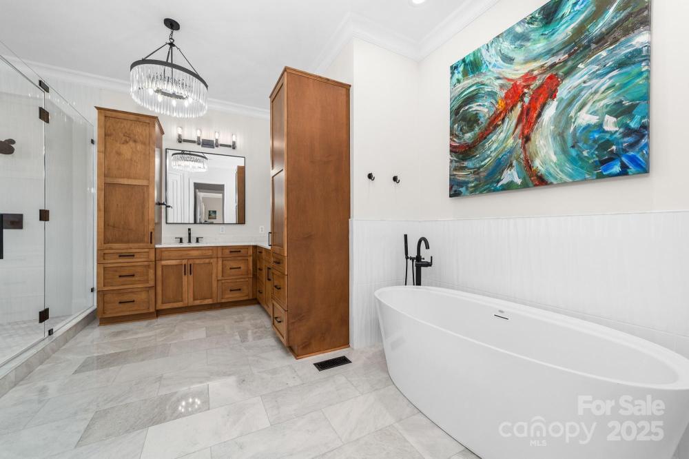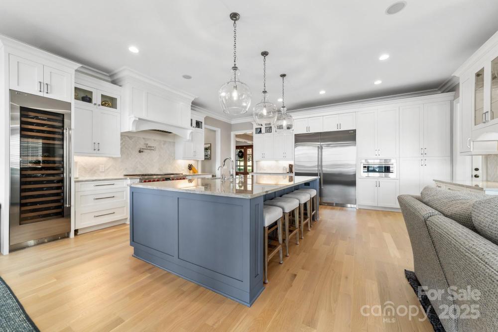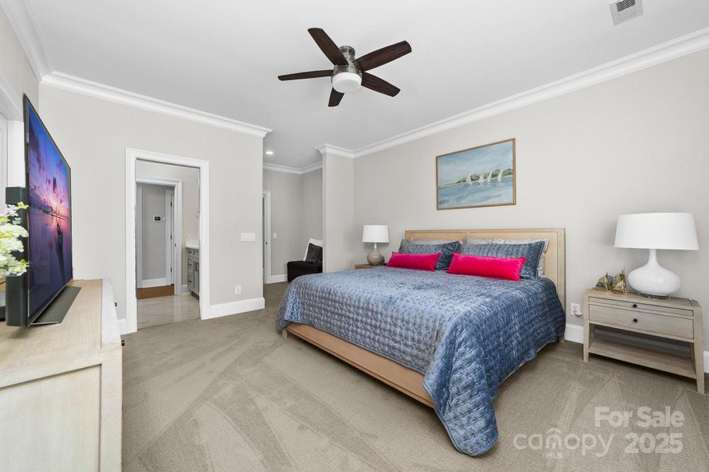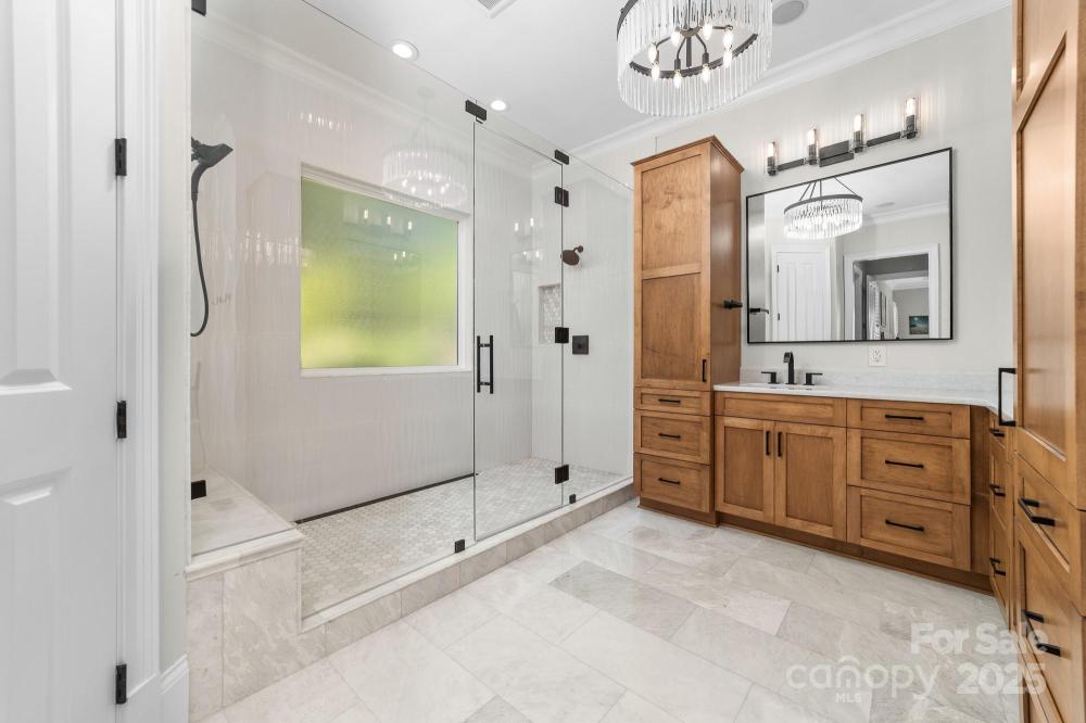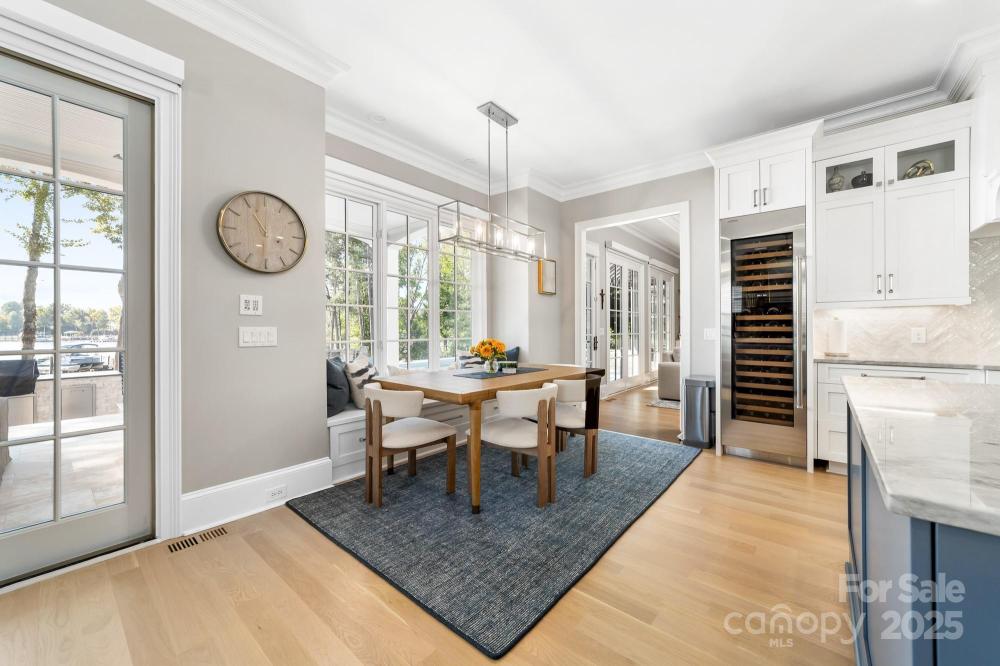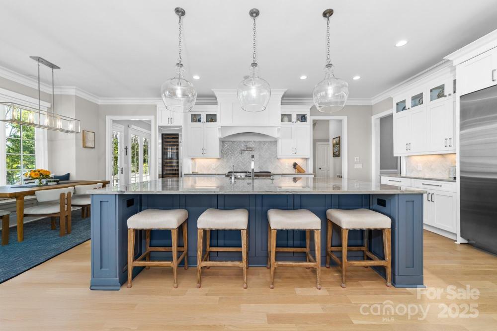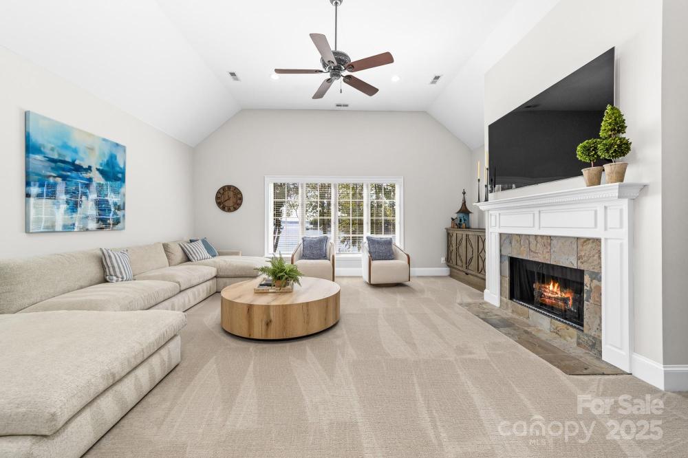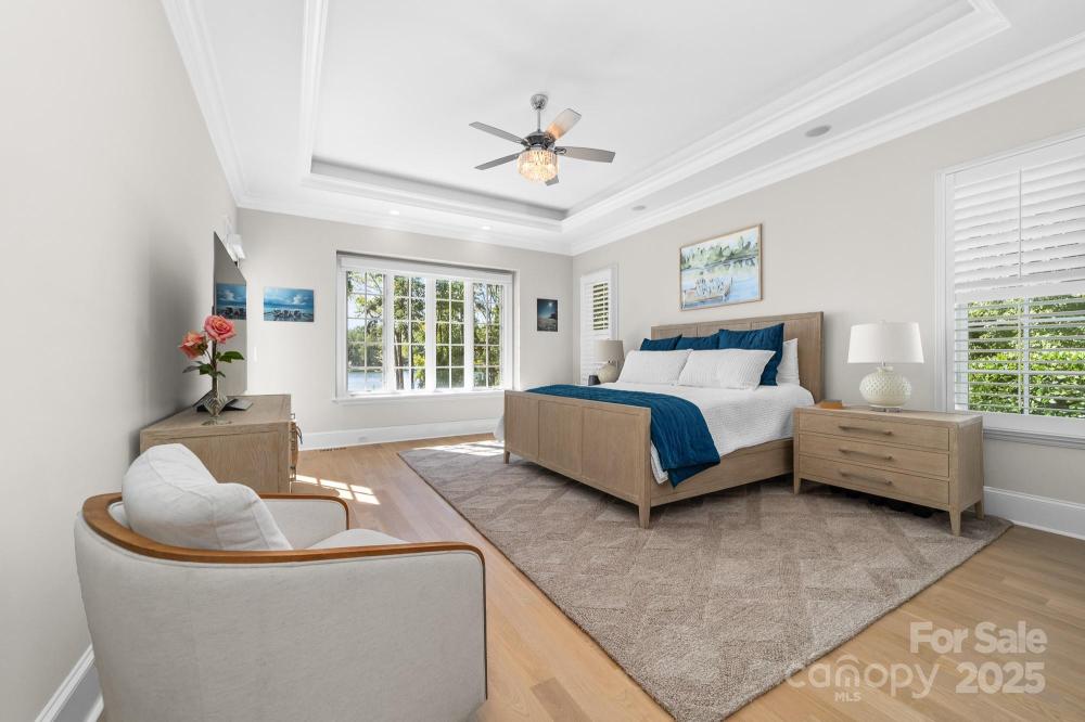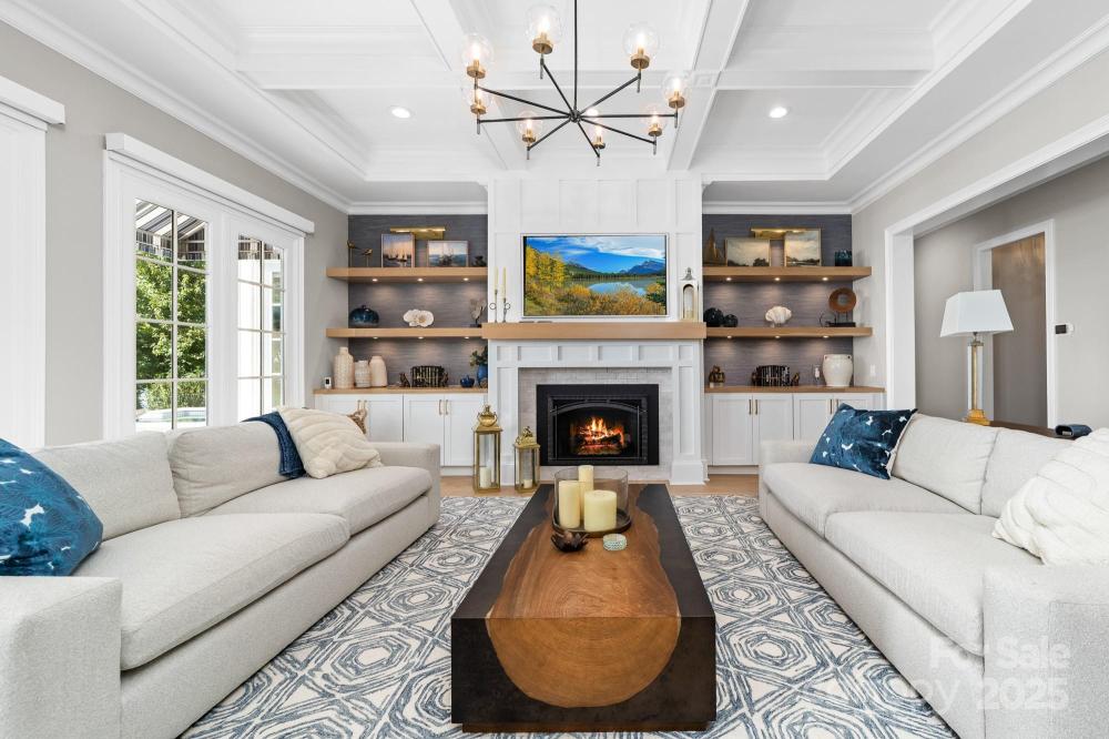 Poised on the shores of Lake Norman in The Point, this extraordinary waterfront residence blends timeless architecture with modern sophistication. A beautifully landscaped lot frames sweeping long-range views, while the backyard reveals a private retreat with a saltwater pool & spa, fenced lawn, sandy beach with fire pit, fresh-water outdoor shower, outdoor dog wash & outdoor grilling area. The expansive dock, recently rebuilt, features a 17,000 lb lift, 50 amps of power & lake-fed irrigation. Inside, a grand two-story foyer opens to a living room with coffered ceiling, fireplace & walls of glass capturing the lake. The gourmet kitchen showcases a massive quartzite island, Sub-Zero 66” fridge/freezer, Wolf range, wine & beverage fridges & reverse osmosis filtration. The main-level primary suite offers lake views, tray ceiling, dual walk-ins & a spa-inspired bath. Upstairs, four gracious en-suites, a flex room with fireplace & laundry provide balance. White oak floors, custom millwork, Hunter Douglas shades, Denon sound system, epoxy garage, instant tankless water heater, encapsulated crawlspace, home generator & whole-house water treatment complete this remarkable home.
