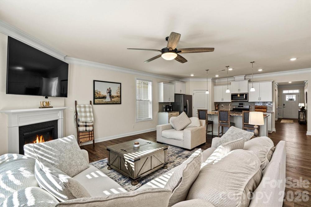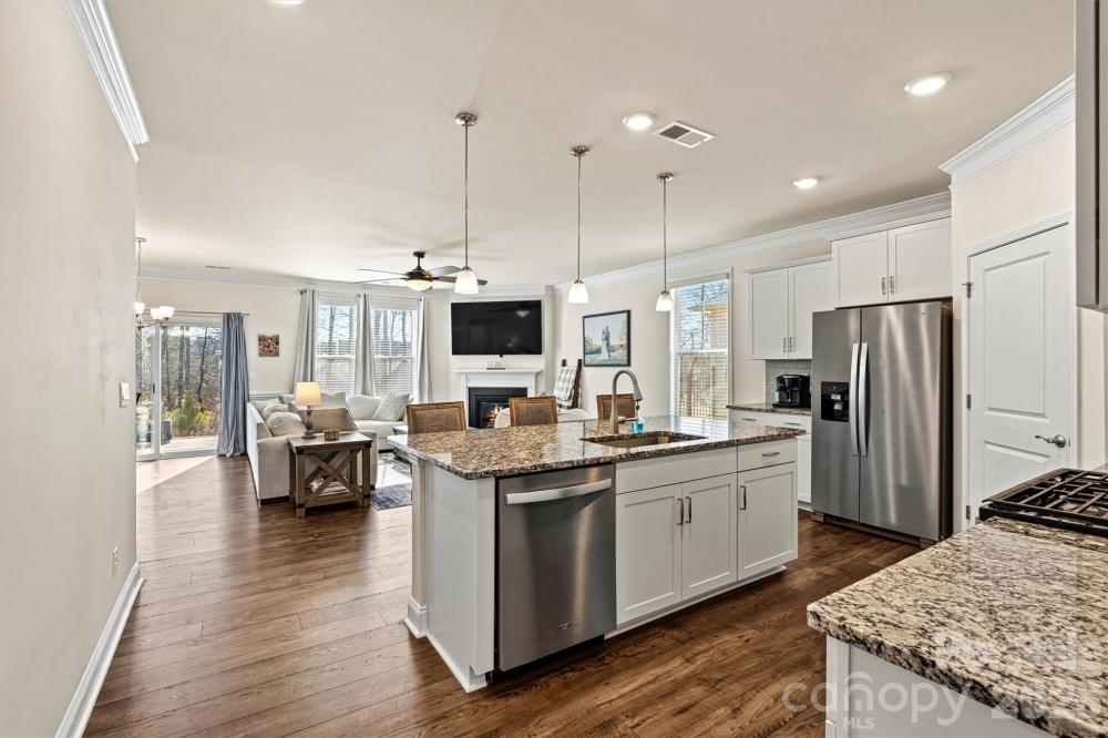 Welcome to your new home! This desirable 4 bedroom, 2 bath, single-story gem is ready for its new owners and offers a perfect blend of comfort and convenience. As you step inside, you'll be greeted by a welcoming entryway flanked by two secondary bedrooms, which are separated by a full bath. Across the hall, you'll find bedroom #4, with the laundry room conveniently situated nearby. The popular open-concept layout of this home provides plenty of room for everyone. The kitchen features granite countertops, a stylish tile backsplash, stainless steel appliances, and a center island that's perfect for casual dining. Plus, the stainless steel refrigerator will convey with an acceptable offer. The spacious living room is made even more inviting by a gas log fireplace, perfect for taking the chill off these cold winter days. Adjacent to the living room, the dining area is quite spacious and opens up with sliding doors leading to the patio, making entertaining effortless. One of the standout features of this property is its location. It backs up to nearly 5 acres of community open space, ensuring that no homes will be built directly behind it. This means you can enjoy the quiet contentment and privacy afforded by the wooded environment behind the home. Also, the lot is a bit larger than some in the neighborhood, adding to the appeal. The primary owner's suite is privately located at the rear of the home and boasts an ensuite bath with a dual vanity with granite countertop, garden tub, tile shower, private water closet, and walk-in closet. This well-designed floorplan flows smoothly and is perfect for anyone needing 4 bedrooms or simply extra space for work, hobbies, or guests. The neighborhood is conveniently located near shopping, restaurants, medical services, gas stations, and more, with easy access to major highways. The CLT Airport is only a quick 25-minute drive, and Lake Norman is just a few minutes away at Beatty's Ford Access, where you can launch your boat or enjoy Beatty's Ford Park with its picnic shelter, playground, splash pad, fishing pier, and swimming beach, all open to the public. This home is served by highly desirable East Lincoln County schools and enjoys low Lincoln County taxes. Don't miss out on this fantastic opportunity to make this charming home your own! OPEN HOUSE-Saturday, Feb 21st 12pm-2pm.